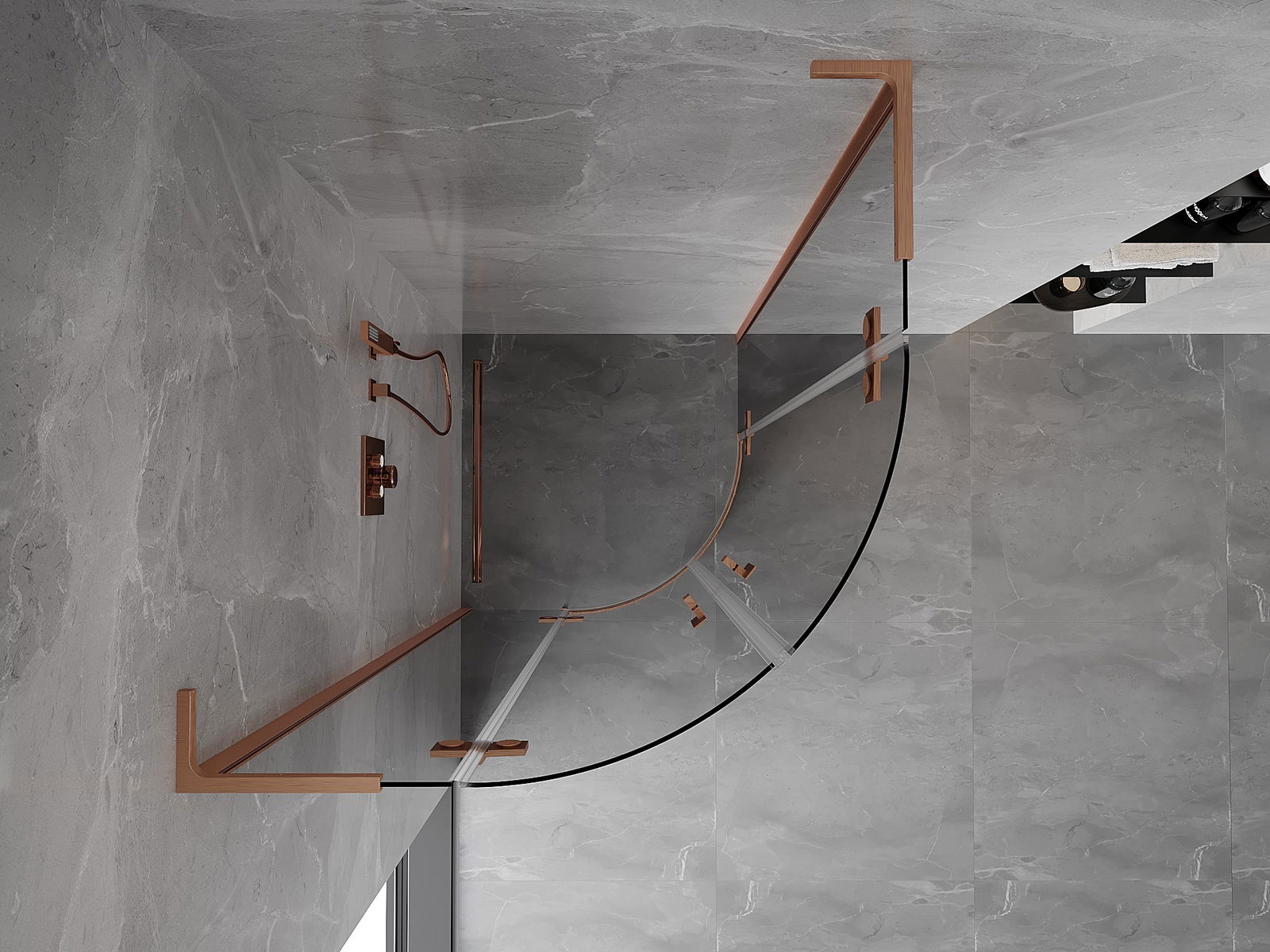 Mexen Mist L půlkruhový sprchový kout výklopný 90 x 90 cm, transparentní, kartáčovaná měď - 8A33L-090-090-65-00