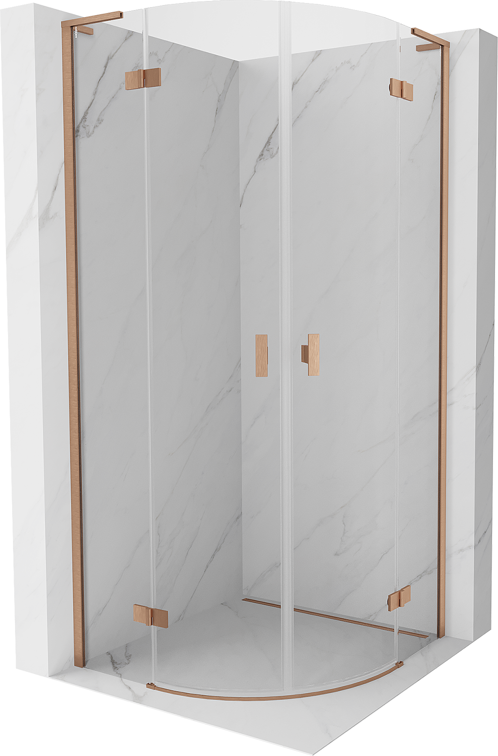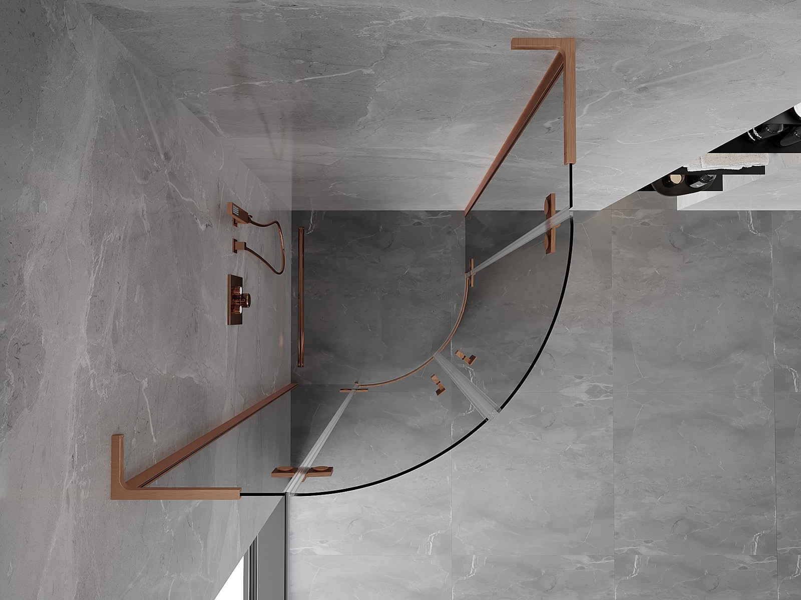 Mexen Mist L sprchový kout půlkruhový s otočnými dveřmi 100 x 100 cm, transparentní, kartáčovaná měď
