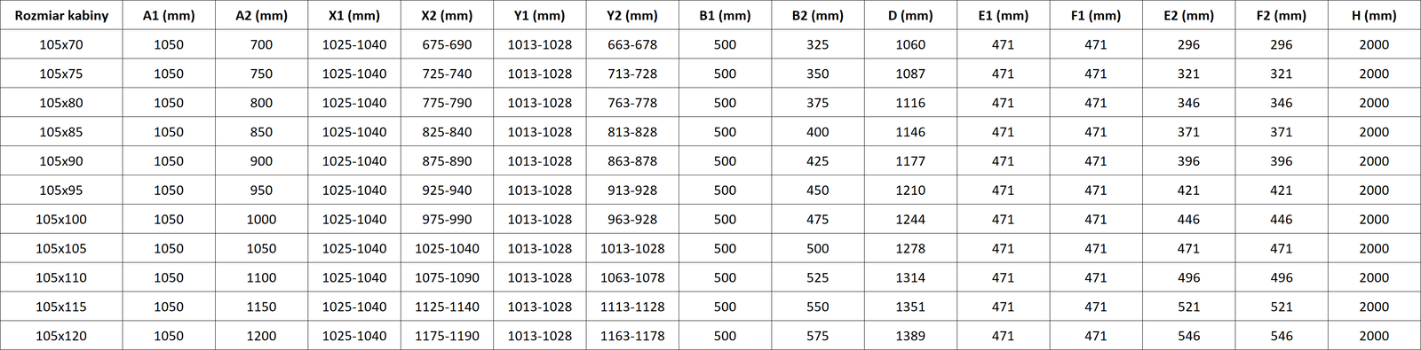 Rozměr: 105x90 cm (levé dveře 105 cm, pravé dveře 90 cm)