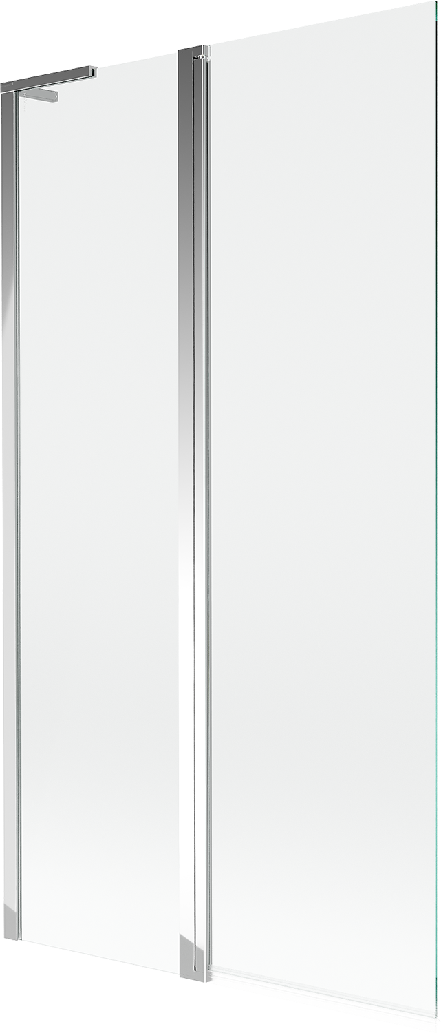 Paravan vyrobený ze dvou křídel s možností složení. Takové řešení umožňuje ušetřit více místa v koupelně a umožňuje volné využití zbývajícího prostoru, když nepoužíváme koupací zónu.