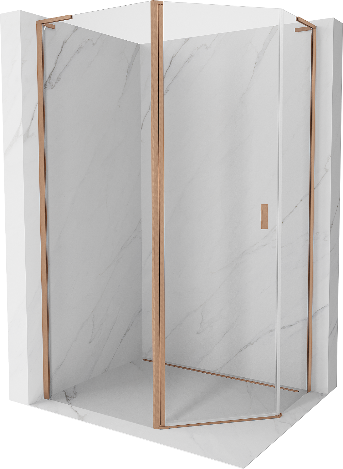 Mexen Mist L asymetrická pětiúhelníková sprchová kabina s otočnými dveřmi 90x80 cm, transparentní, kartáčovaná