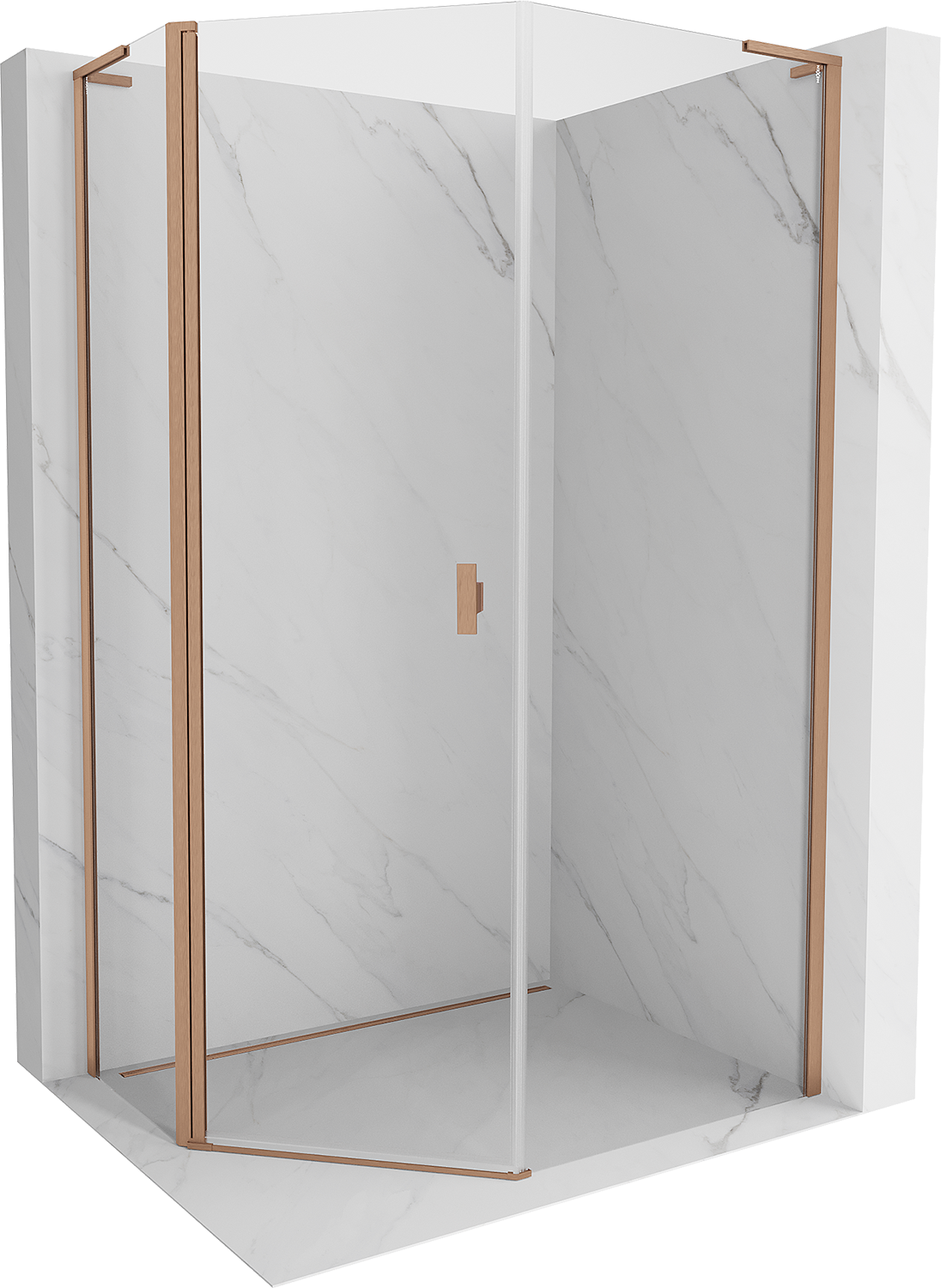Mexen Mist L asymetrická sprchová kabina pětiúhelníková výkyvná 90x100 cm, transparentní, kartáčovaná měď