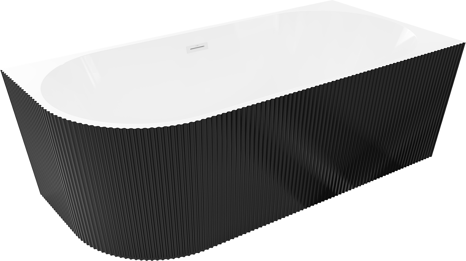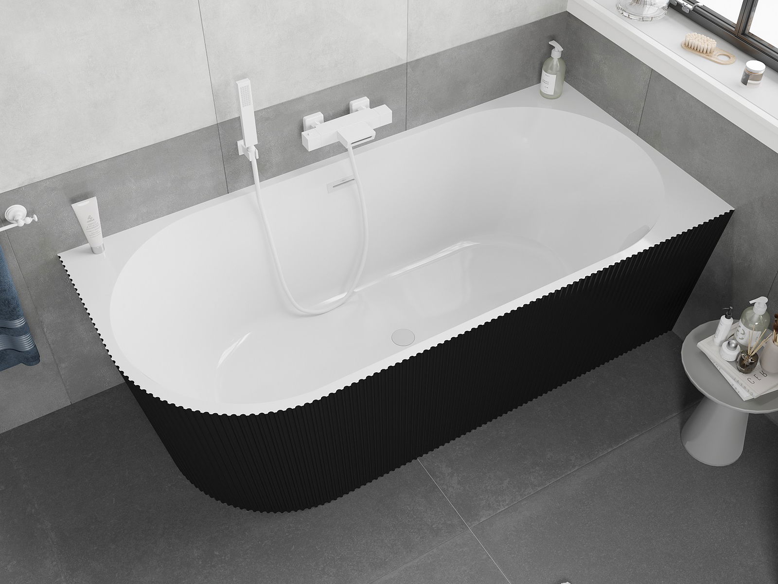 Mexen Silo volně stojící rohová vana pravá rýhovaná 150 x 75 cm, bílá/černá, přepad bílý - 52891507575P-20