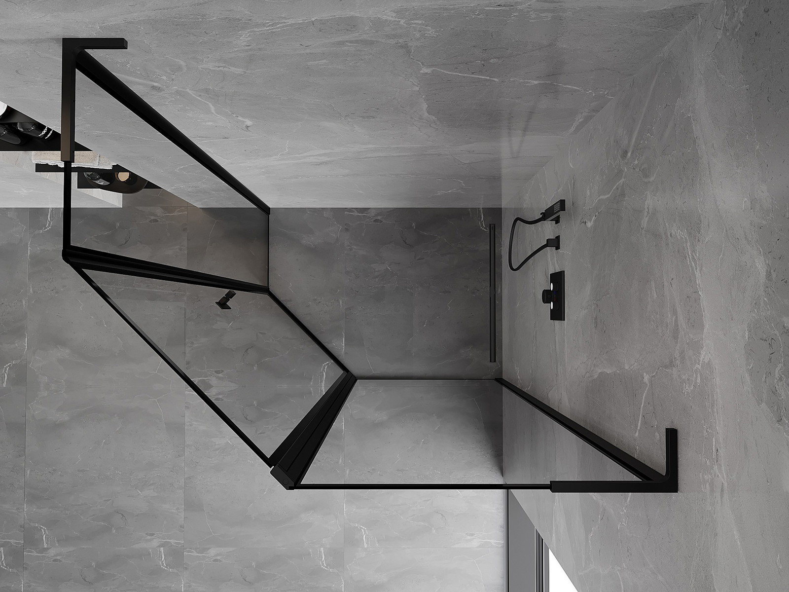 Mexen Mist L pětiúhelníkový asymetrický sprchový kout pravostranný 90 x 80 cm, černý rám, černá - 8A8L-090-080-70-70-P
