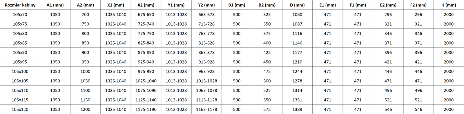 Rozměr: 105x110 cm (levé dveře 105 cm, pravé dveře 110 cm)