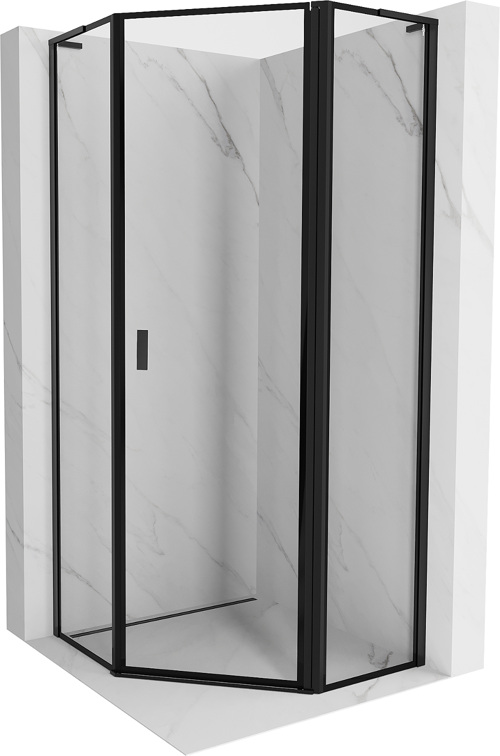 Mexen Mist L sprchový kout pětiúhelníkový pantový pravý 90 x 90 cm, černý rám, černý - 8A8L-090-090-70-70-P