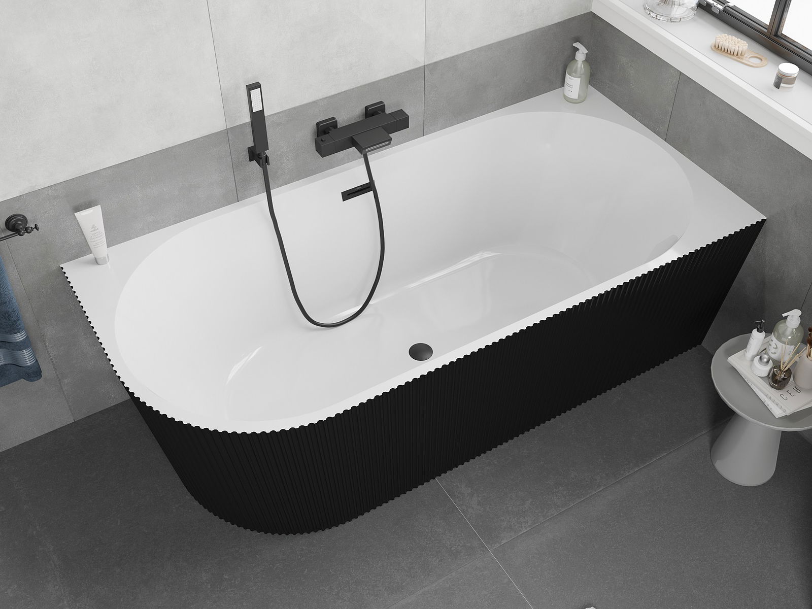Mexen Silo volně stojící rohová vana pravá rýhovaná 150 x 75 cm, bílá/černá, přepad černý - 52891507575P-70