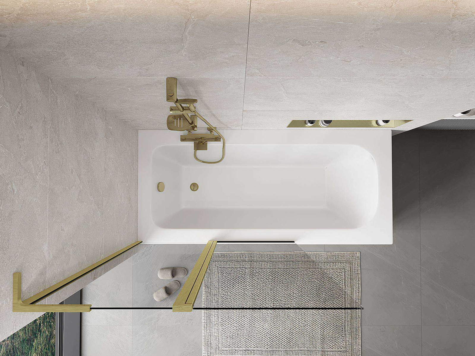 Paravan vyrobený ze dvou křídel s možností složení. Takové řešení umožňuje ušetřit více místa v koupelně a umožňuje volné využití zbývajícího prostoru, když nepoužíváme koupací zónu.