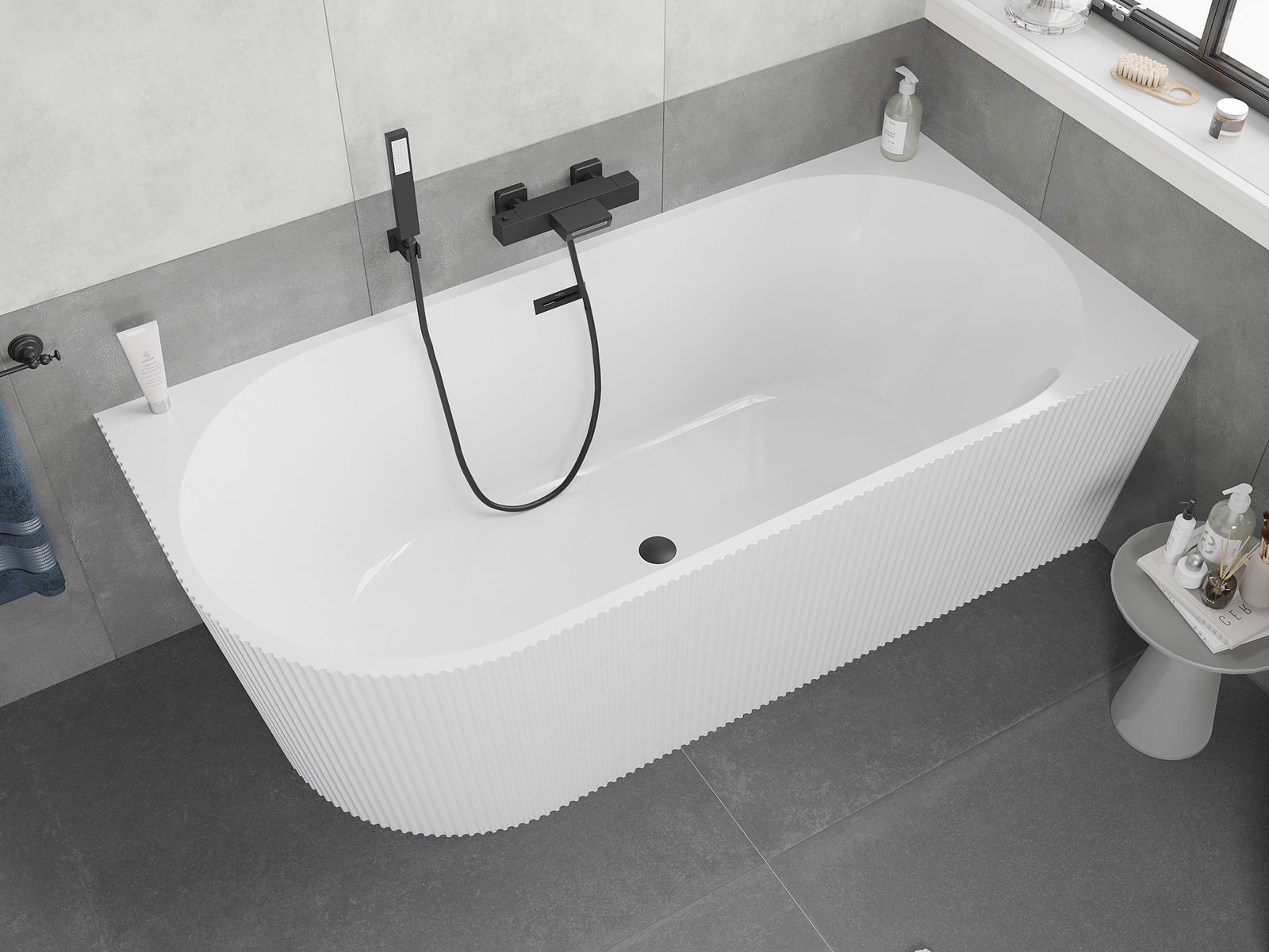 Mexen Silo volně stojící rohová vana pravá rýhovaná 170 x 80 cm, bílá, černý přepad - 52891708000P-70