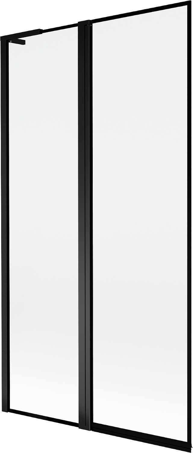 Paravan vyrobený ze dvou křídel s možností složení. Takové řešení umožňuje ušetřit více místa v koupelně a umožňuje volné využití zbývajícího prostoru, když nepoužíváme koupací zónu.