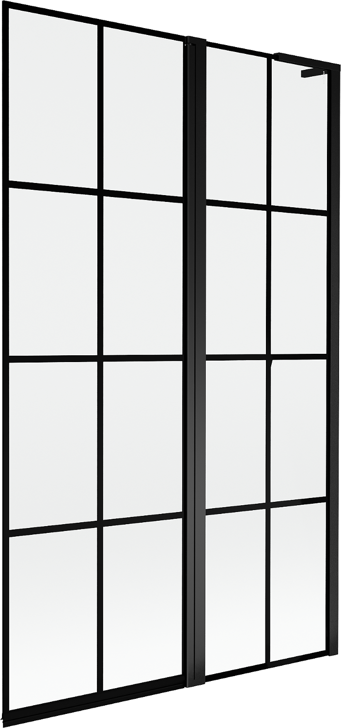Paravan vyrobený ze dvou křídel s možností složení. Takové řešení umožňuje ušetřit více místa v koupelně a umožňuje volné využití zbývajícího prostoru, když nepoužíváme koupací zónu.
