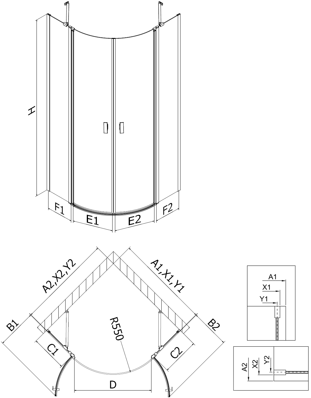 Sprchové kouty, dveře a stěny jsou standardně přizpůsobeny pro montáž na sprchové vaničky určitých rozměrů. Právě tyto rozměry jsou uvedeny v názvu nebo popisu výrobku. Je však třeba mít na paměti, že skutečné rozměry prvků se mohou mírně lišit od nominálních hodnot. V případě plánované instalace přímo na podlahu se doporučuje pečlivě zkontrolovat vnější rozměry a uspořádání prvků podle technického výkresu.