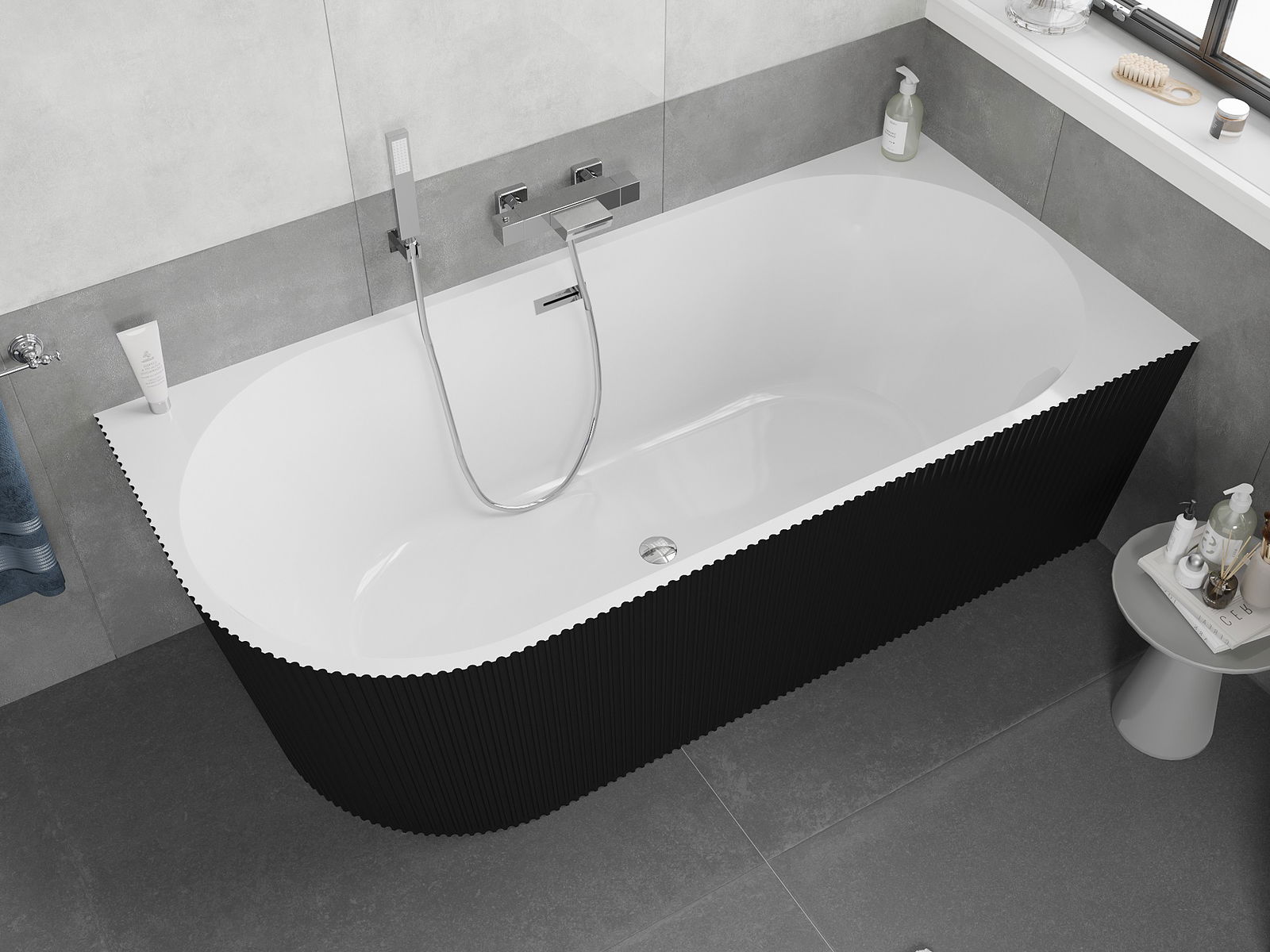 Mexen Silo volně stojící rohová vana pravá rýhovaná 170 x 80 cm, bílá/černá, chromový přepad - 52891708075P-01