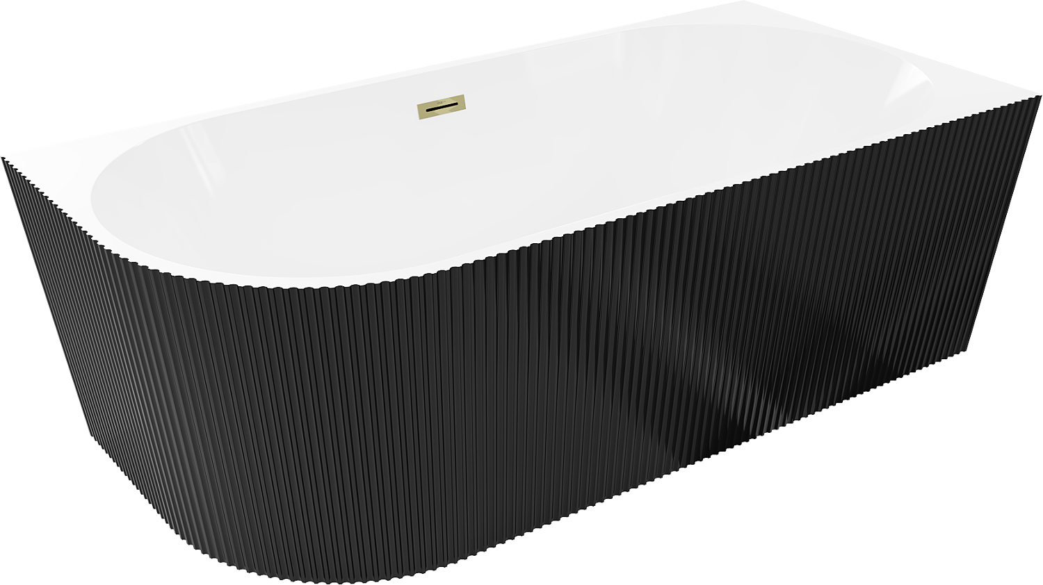 Mexen Silo volně stojící rohová vana pravá rýhovaná 170 x 80 cm, bílá/černá, přepad zlatý - 52891708075P-50
