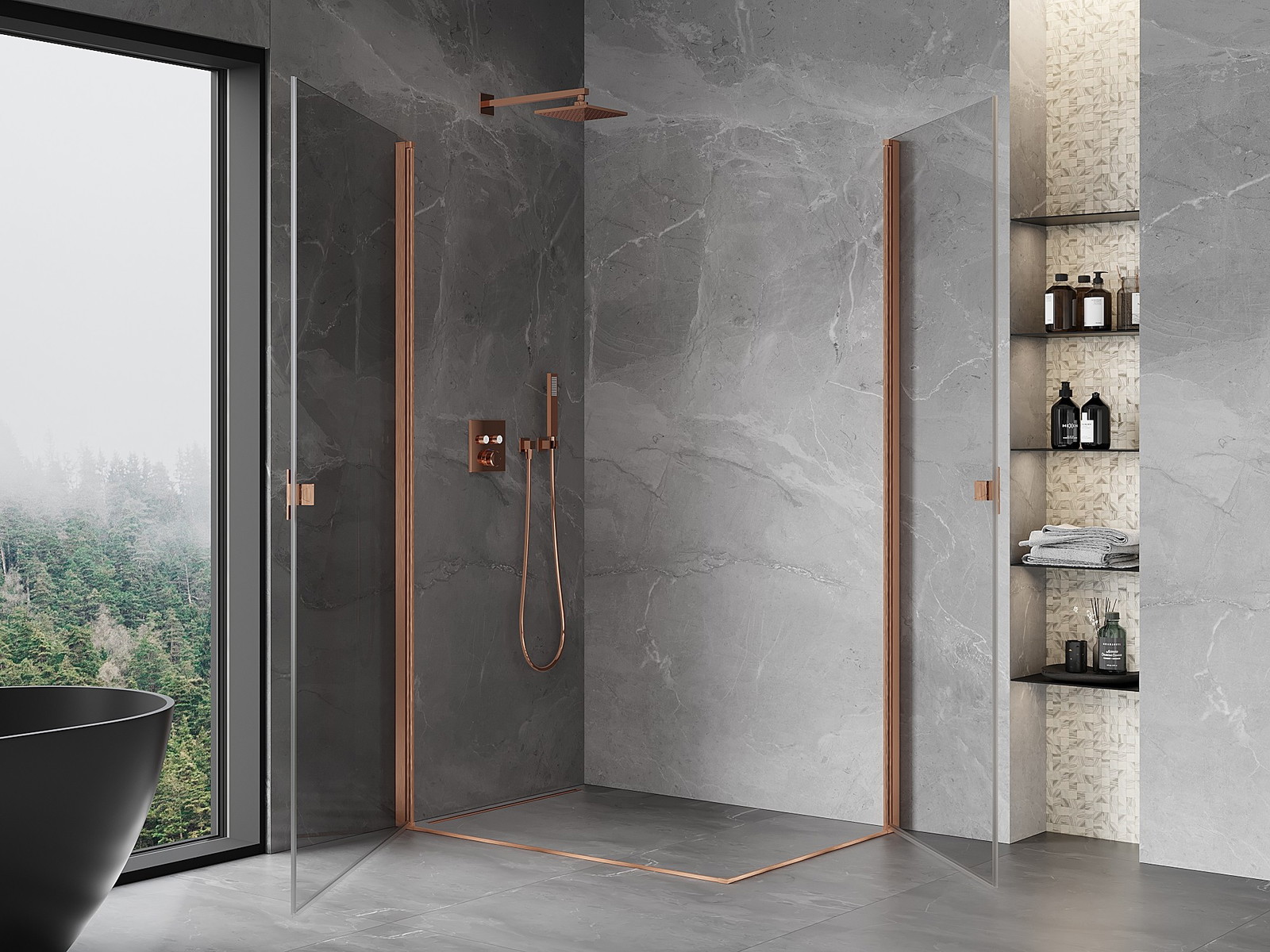 Mexen Mist-B Duo sprchový kout otočný 80 x 70 cm, transparentní, kartáčovaná měď - 8A2-080-070-65-00