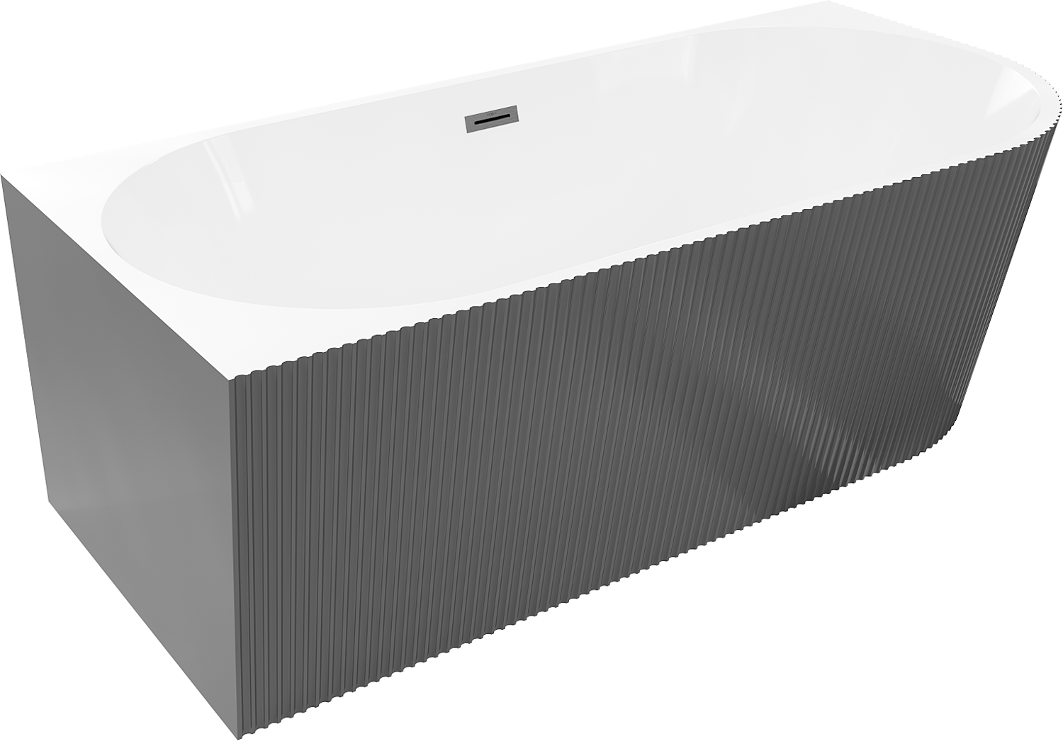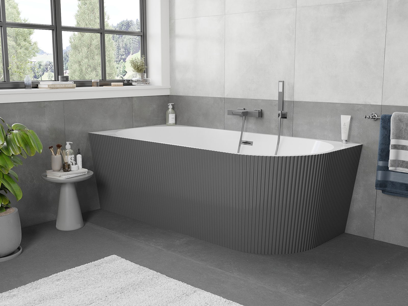 Mexen Silo volně stojící rohová vana levá rýhovaná 150 x 75 cm, bílá/šedá, přepad gun gray kartáčovaný - 52891507562L-66