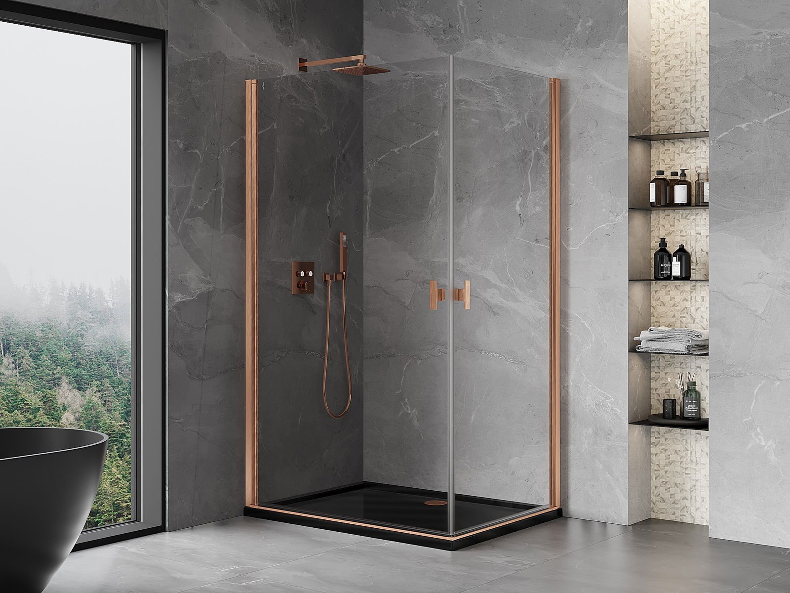 Mexen Mist-B Duo sprchový kout s otevíracími dveřmi 90 x 70 cm, transparentní, kartáčovaná měď - 8A2-090-070-65-00