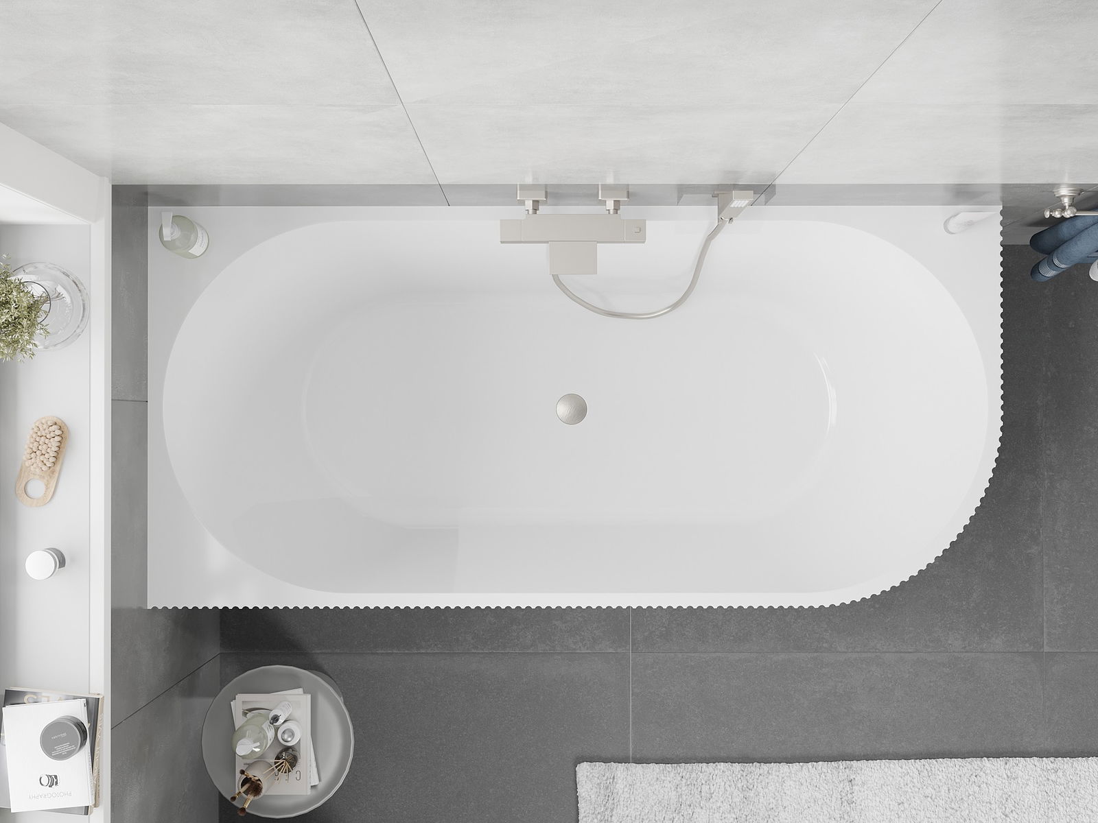 Jedná se o moderní materiál spojující elegantní vzhled s vysokou odolností. Je odolný vůči mechanickému poškození, snadno se čistí a je příjemný na dotek. Průhledná forma a tenký okraj vany jí dodávají lehkost a jedinečný charakter, čímž vytvářejí působivý prvek v uspořádání koupelny.