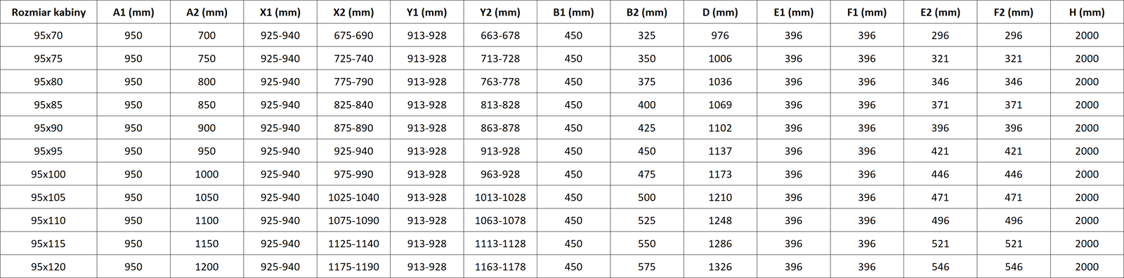 Rozměr: 95x110 cm (levé dveře 95 cm, pravé dveře 110 cm)
