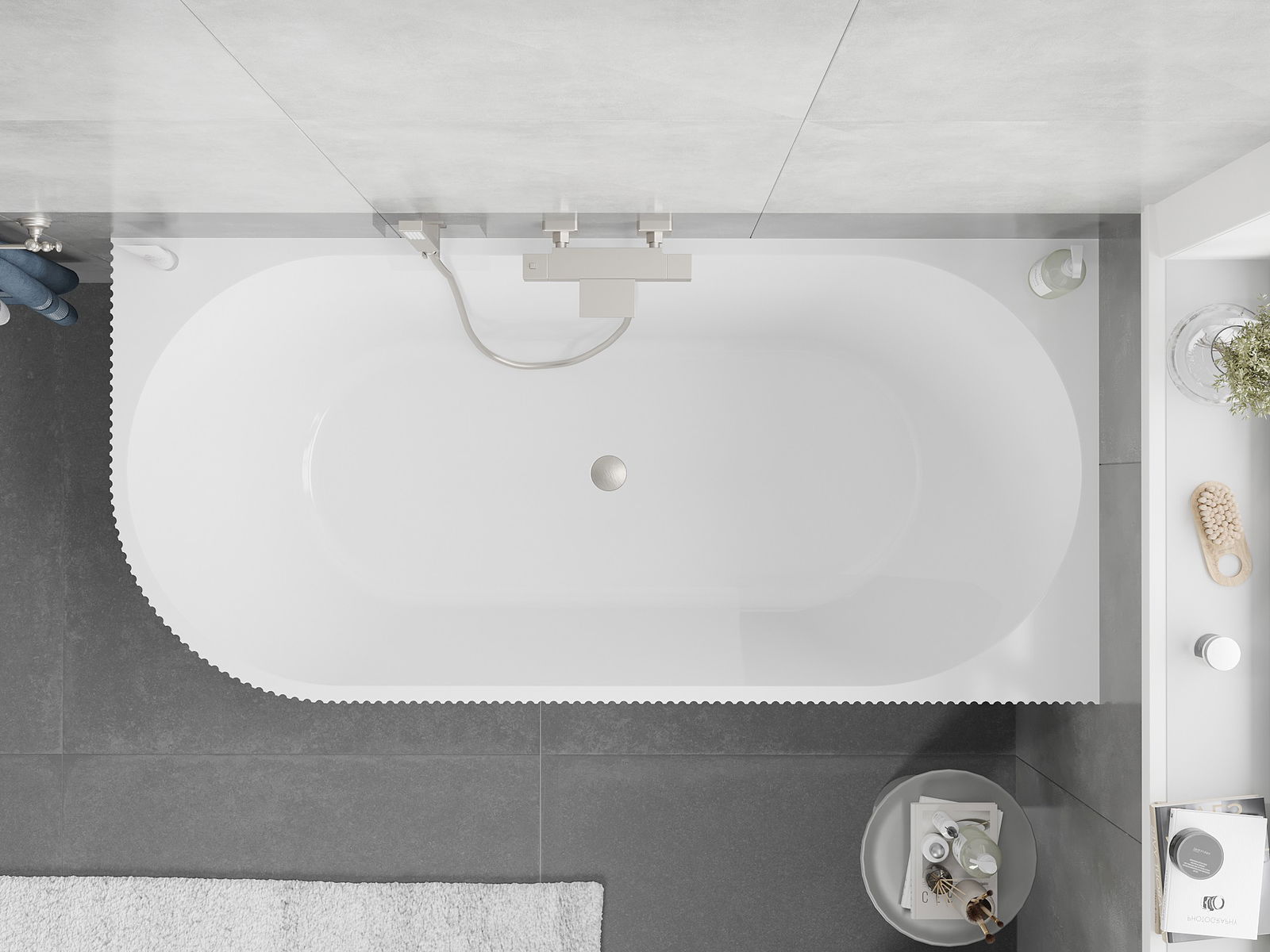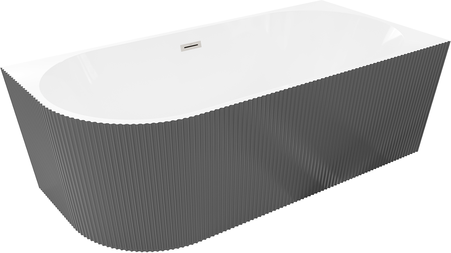 Mexen Silo volně stojící rohová vana pravá vroubkovaná 150 x 75 cm, bílá/šedá, přepad kartáčovaný nikl