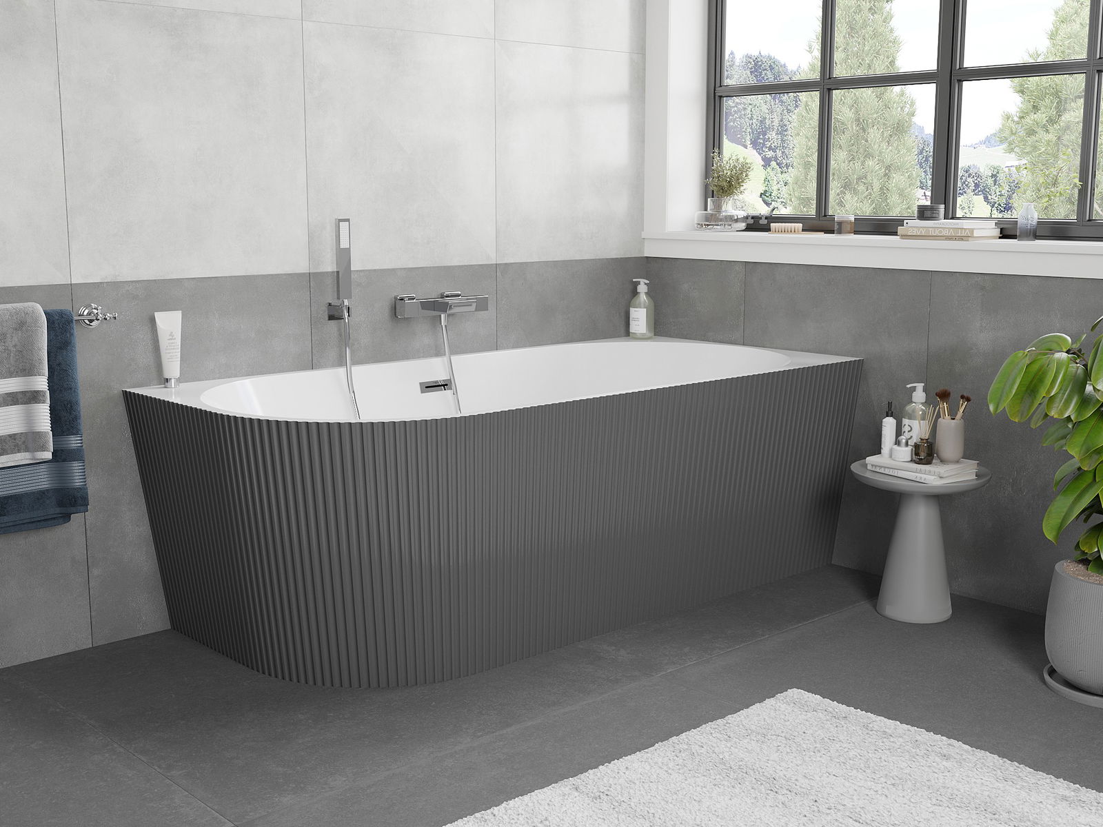 Mexen Silo volně stojící rohová vana pravá rýhovaná 170 x 80 cm, bílá/šedá, přepad chrom - 52891708062P-01