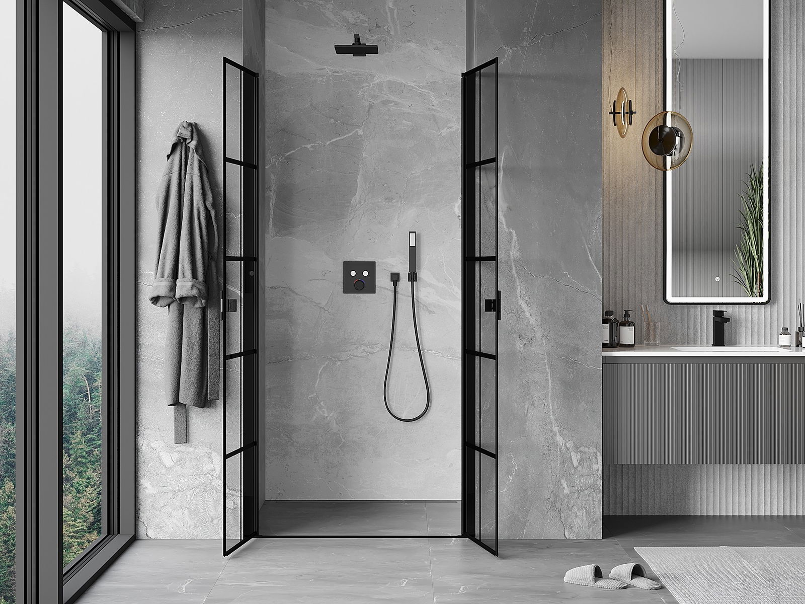 Praktická a pohodlná rukojeť je vyrobena z odolného a trvanlivého kovu. Moderní tvar ve spojení s povrchovou úpravou, která ladí s barvou profilů, dodává celku moderní a stylový vzhled, zdůrazňující estetiku každé koupelny.