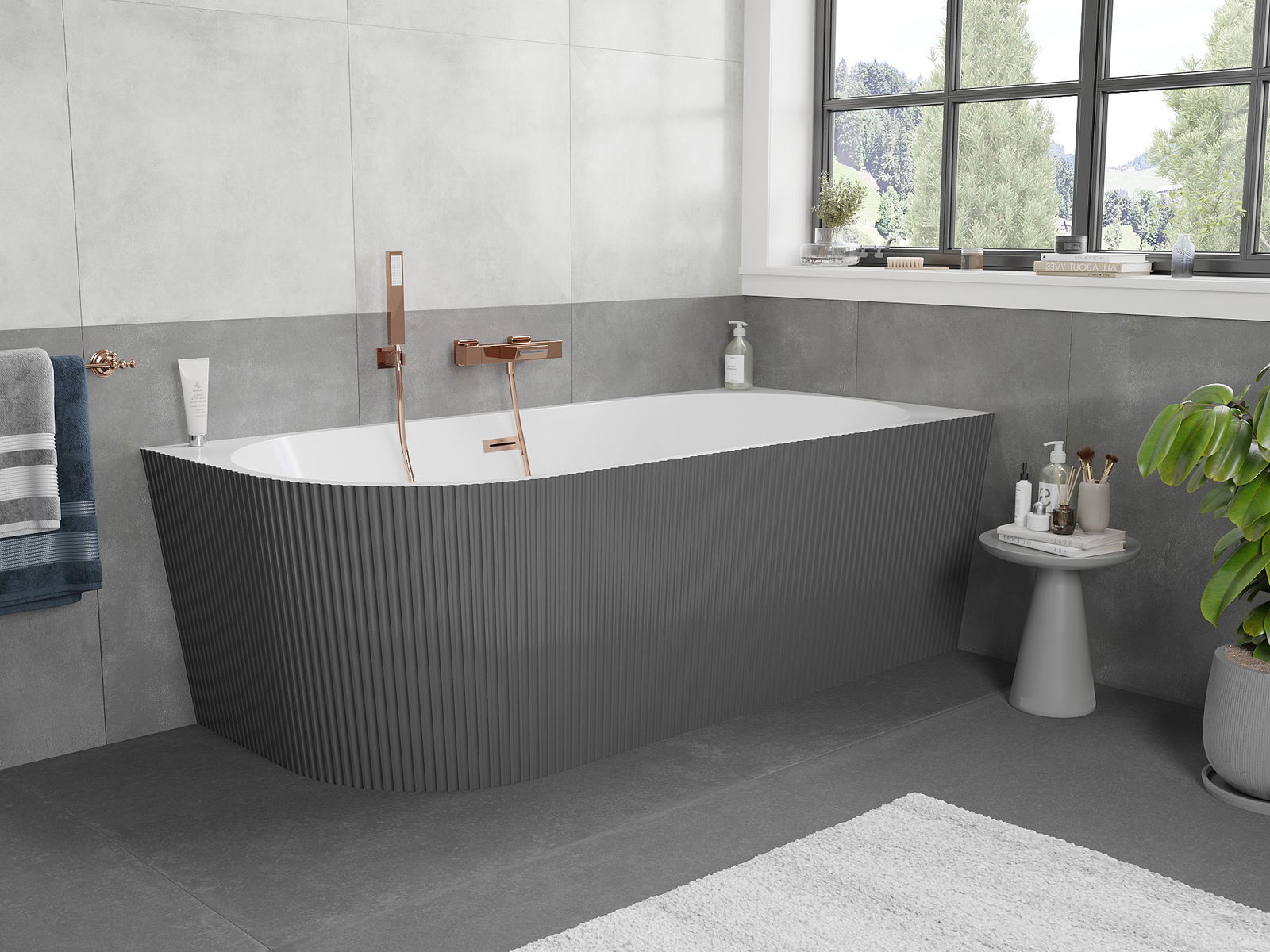 Mexen Silo volně stojící rohová vana pravá rýhovaná 170 x 80 cm, bílá/šedá, přepad měď kartáčovaná