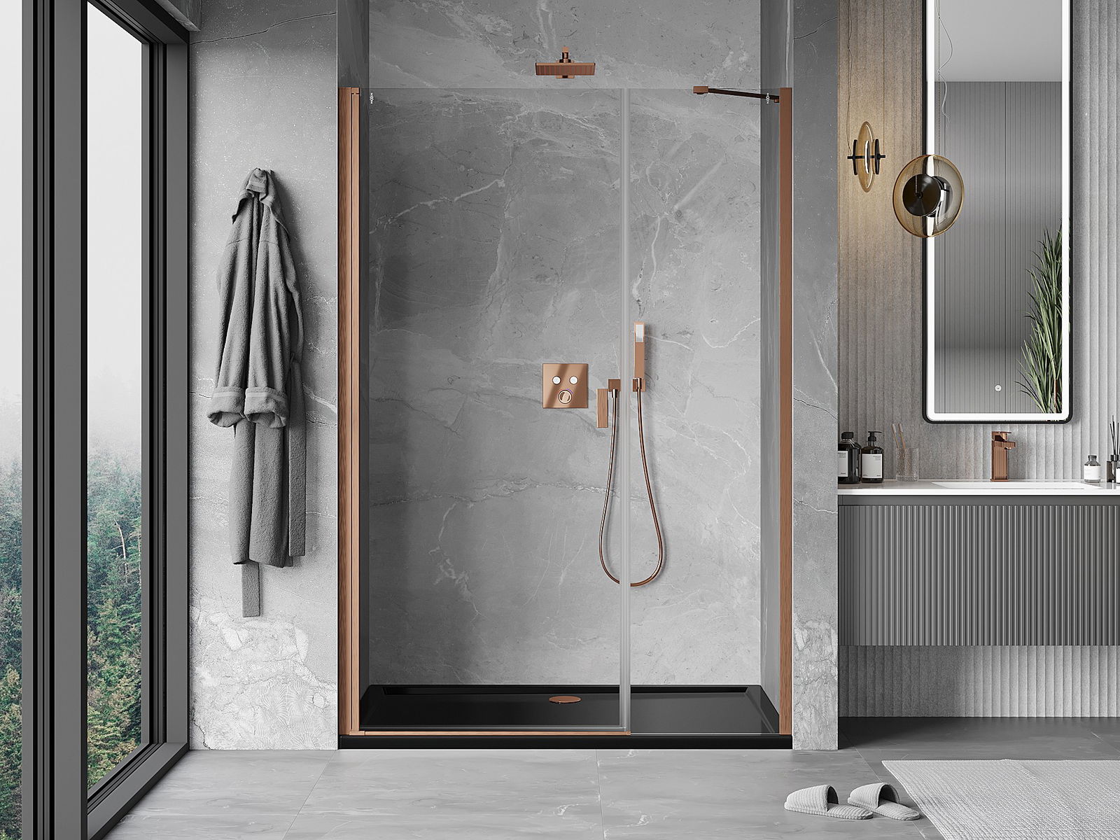 Mexen Mist-B sprchové dveře otevírací 95 cm, transparentní, kartáčovaná měď - 8A2-095-001-65-00