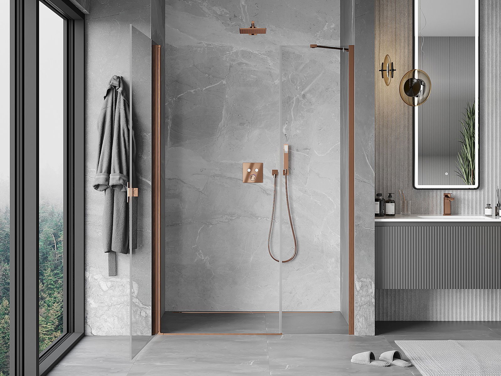 Mexen Mist-B sprchové dveře otevírací 105 cm, transparentní, kartáčovaná měď - 8A2-105-001-65-00