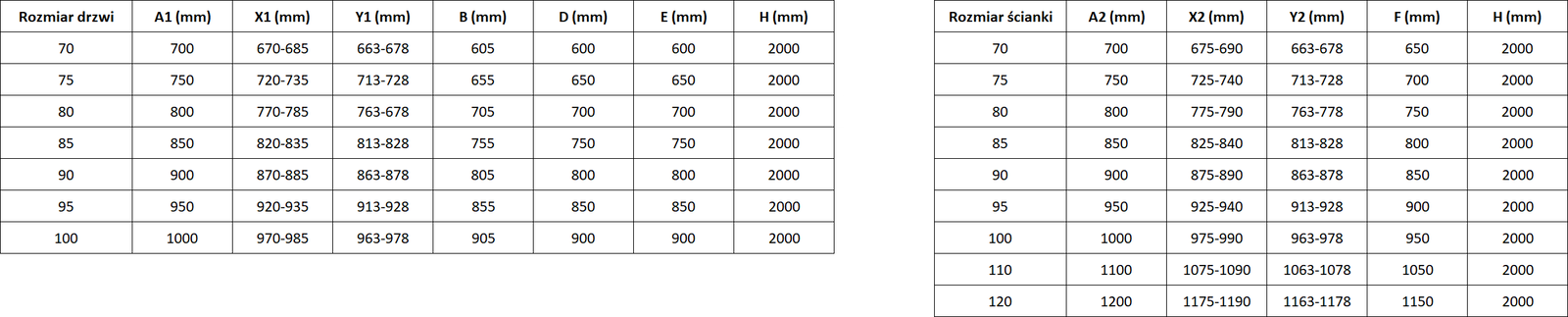 Velikost: 90x110 cm (levé dveře 90 cm, stěna 110 cm)