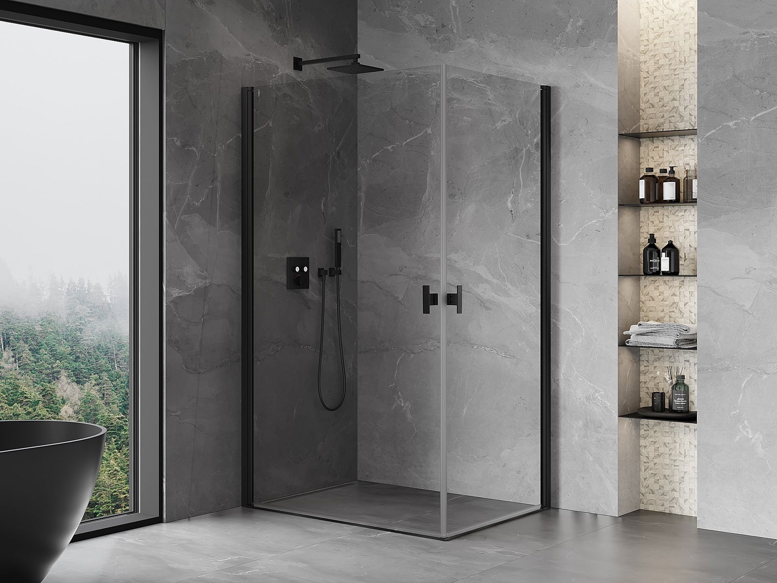 Mexen Mist-B Duo sprchová kabina otočná 95 x 85 cm, transparentní, černá - 8A2-095-085-70-00