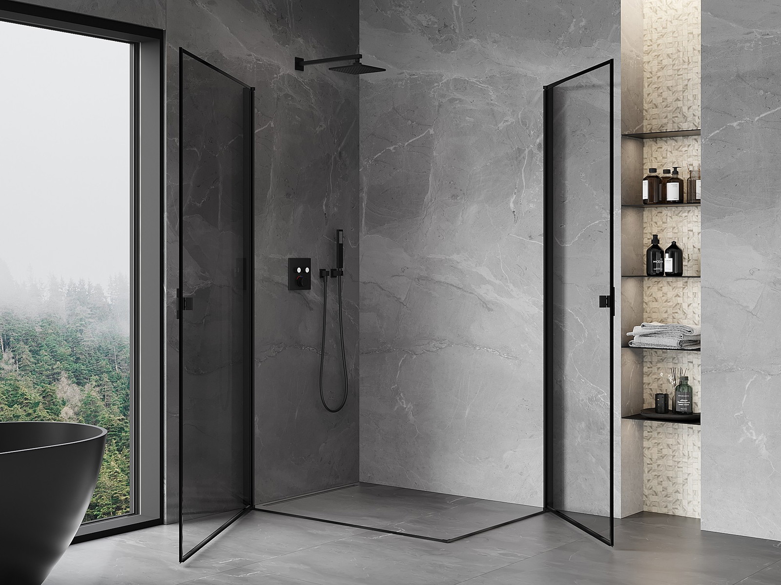 Otevírací dveře umožňují maximální svobodu při používání. Mají pevné panty vyrobené z odolného materiálu, které se snadno čistí a umožňují snadný přístup do interiéru kabiny.