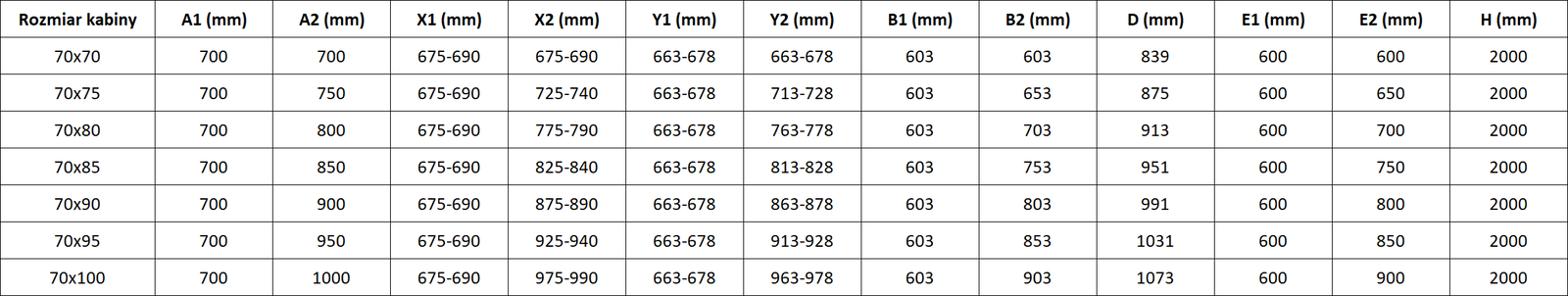 Sprchové kouty, dveře a stěny jsou standardně přizpůsobeny pro montáž na sprchové vaničky určitých rozměrů. Právě tyto rozměry jsou uvedeny v názvu nebo popisu výrobku. Je však třeba mít na paměti, že skutečné rozměry prvků se mohou mírně lišit od nominálních hodnot. V případě plánované instalace přímo na podlahu se doporučuje pečlivě zkontrolovat vnější rozměry a uspořádání prvků podle technického výkresu.