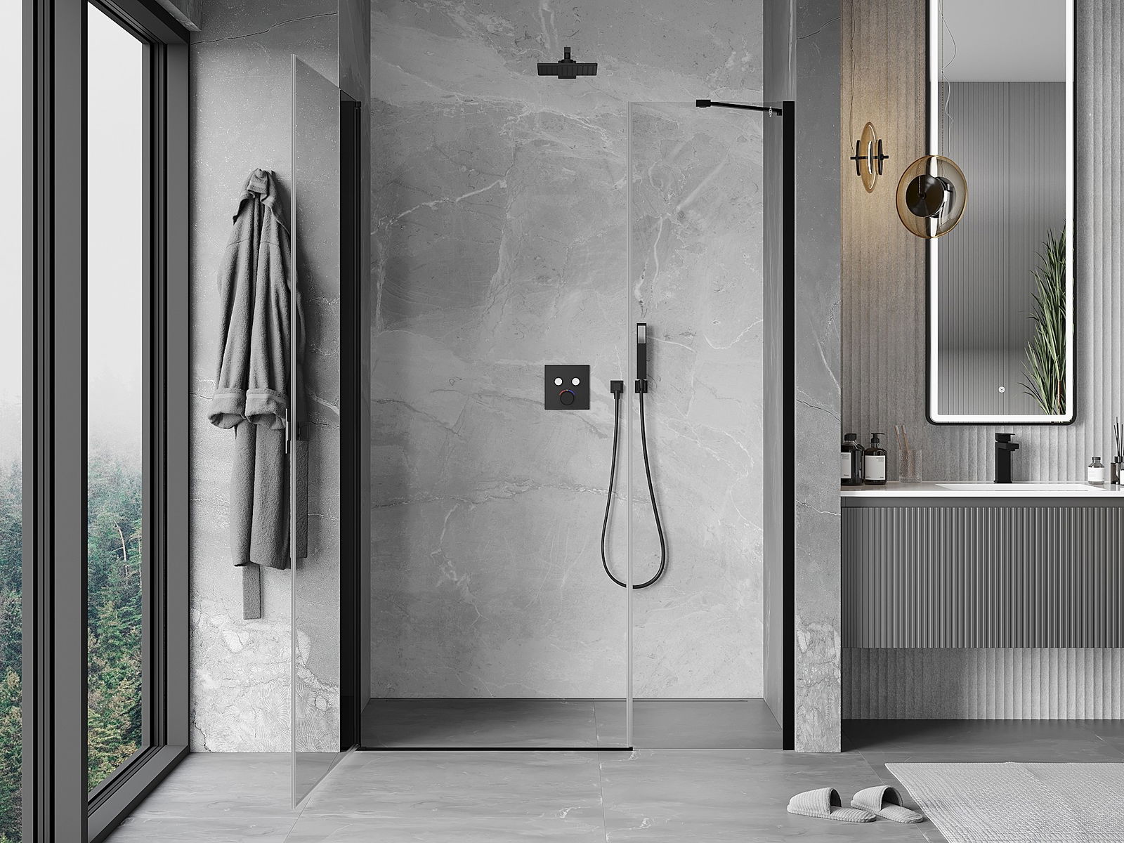 Praktická a pohodlná rukojeť je vyrobena z odolného a trvanlivého kovu. Moderní tvar ve spojení s povrchovou úpravou, která ladí s barvou profilů, dodává celku moderní a stylový vzhled, zdůrazňující estetiku každé koupelny.