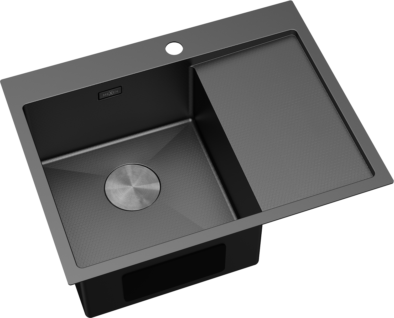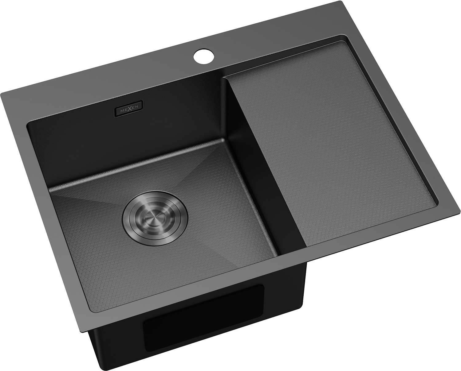 Mexen Exar ocelový dřez s 1 komorou a odkapávačem, levý 620 x 480 mm, černý HC - 6431621005L-70HC