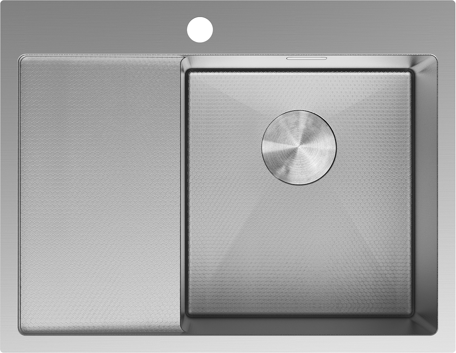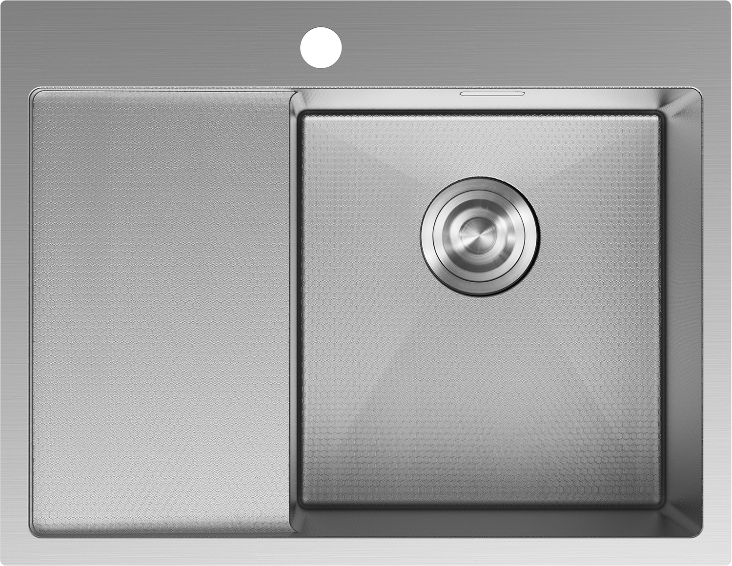 Dřez má skrytý přepadový otvor, který chrání před přetečením vody a zároveň si zachovává elegantní vzhled. Diskrétně zakomponovaný do stěny dřezu nenarušuje jeho estetiku. Je to praktické a stylové řešení, které spojuje bezpečnost s moderním designem.