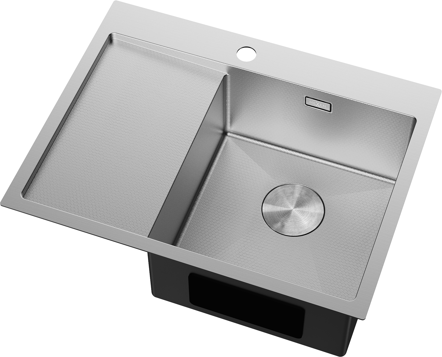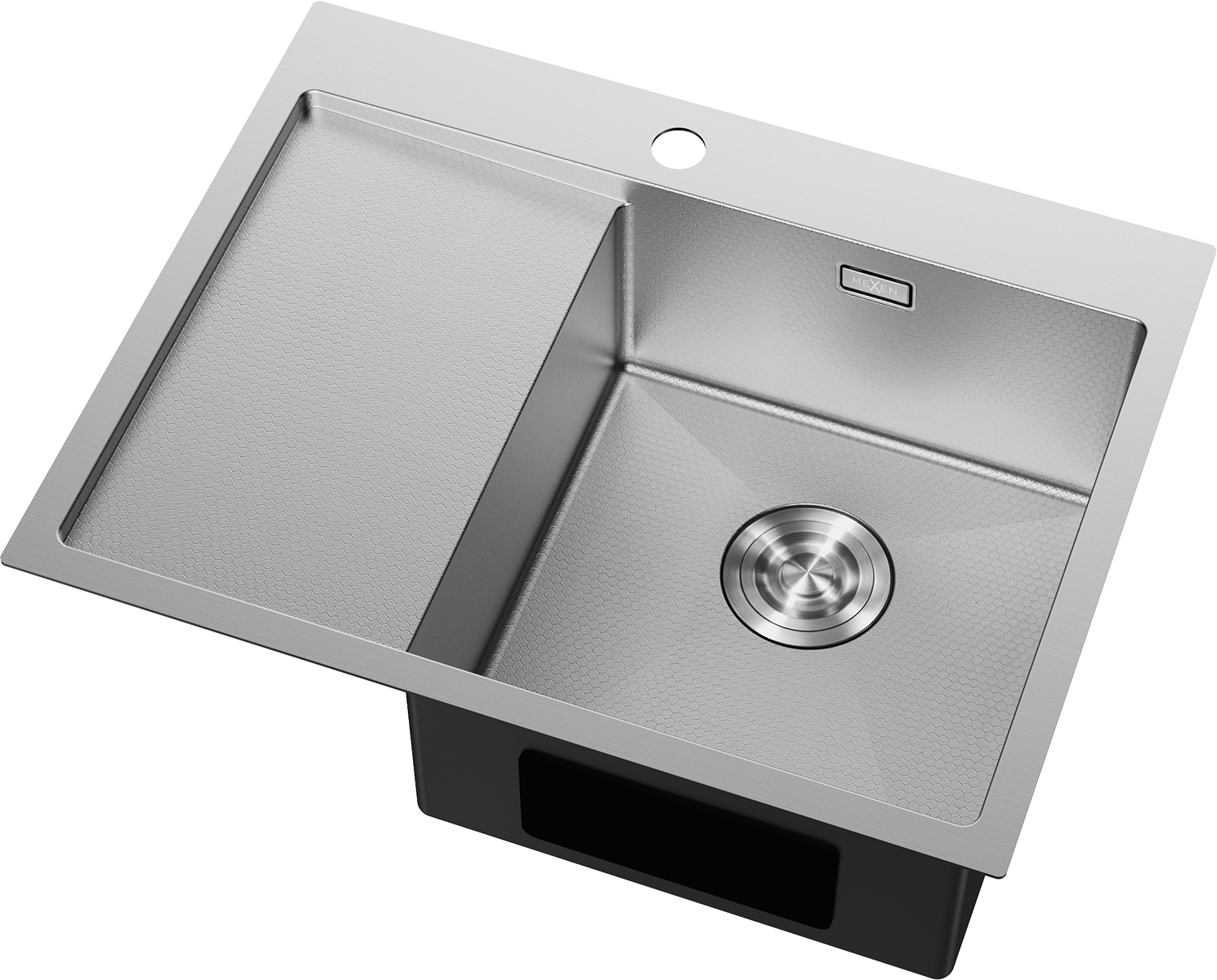 Mexen Exar nerezový dřez s 1 komorou a odkapávačem, pravý 620 x 480 mm, inox HC - 6432621005P-01HC