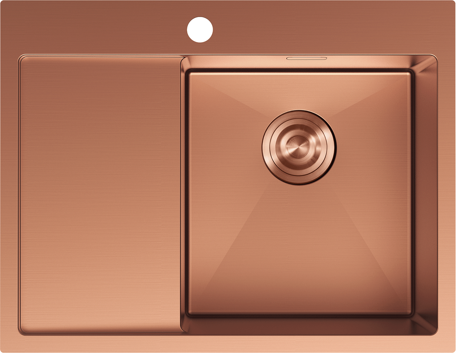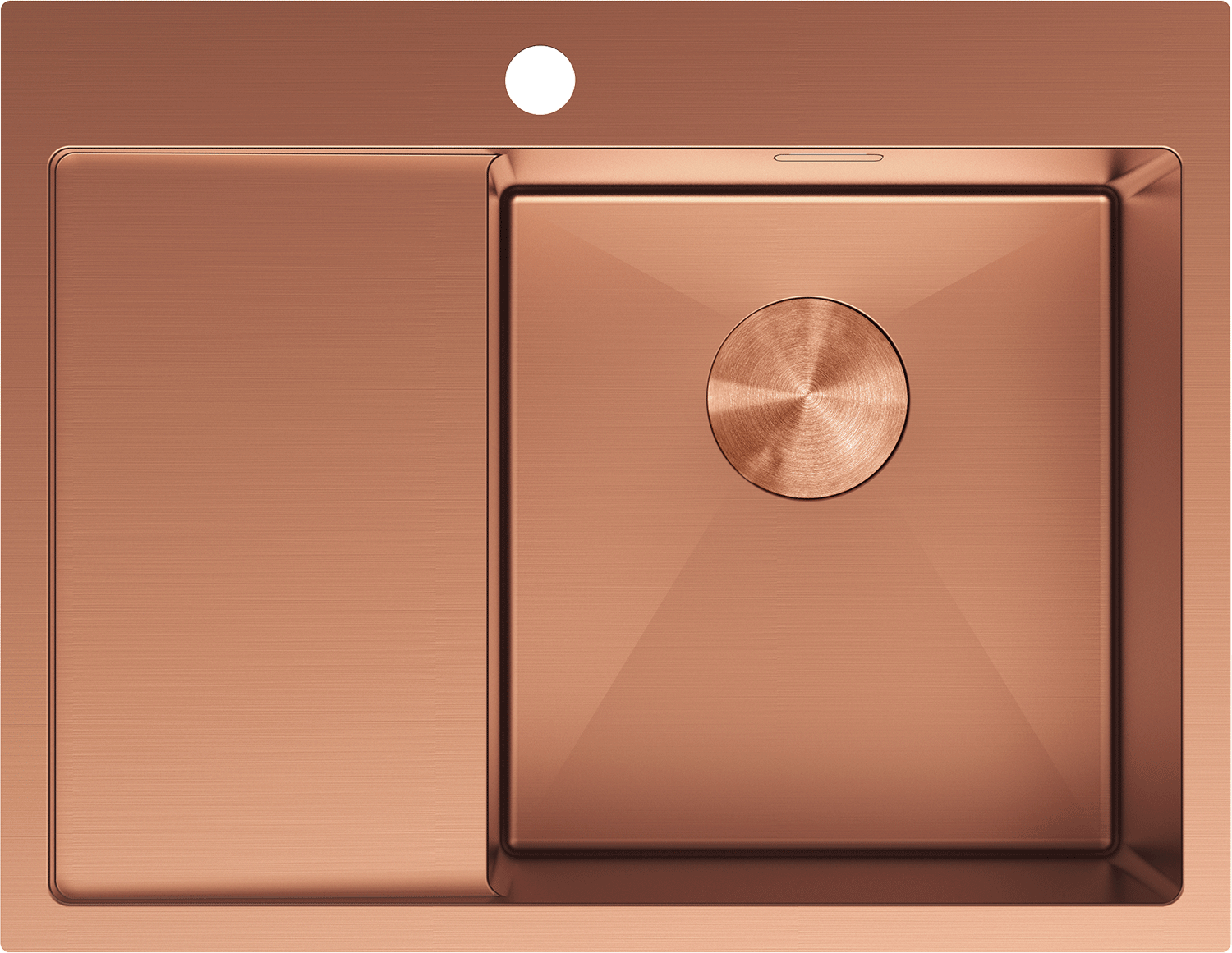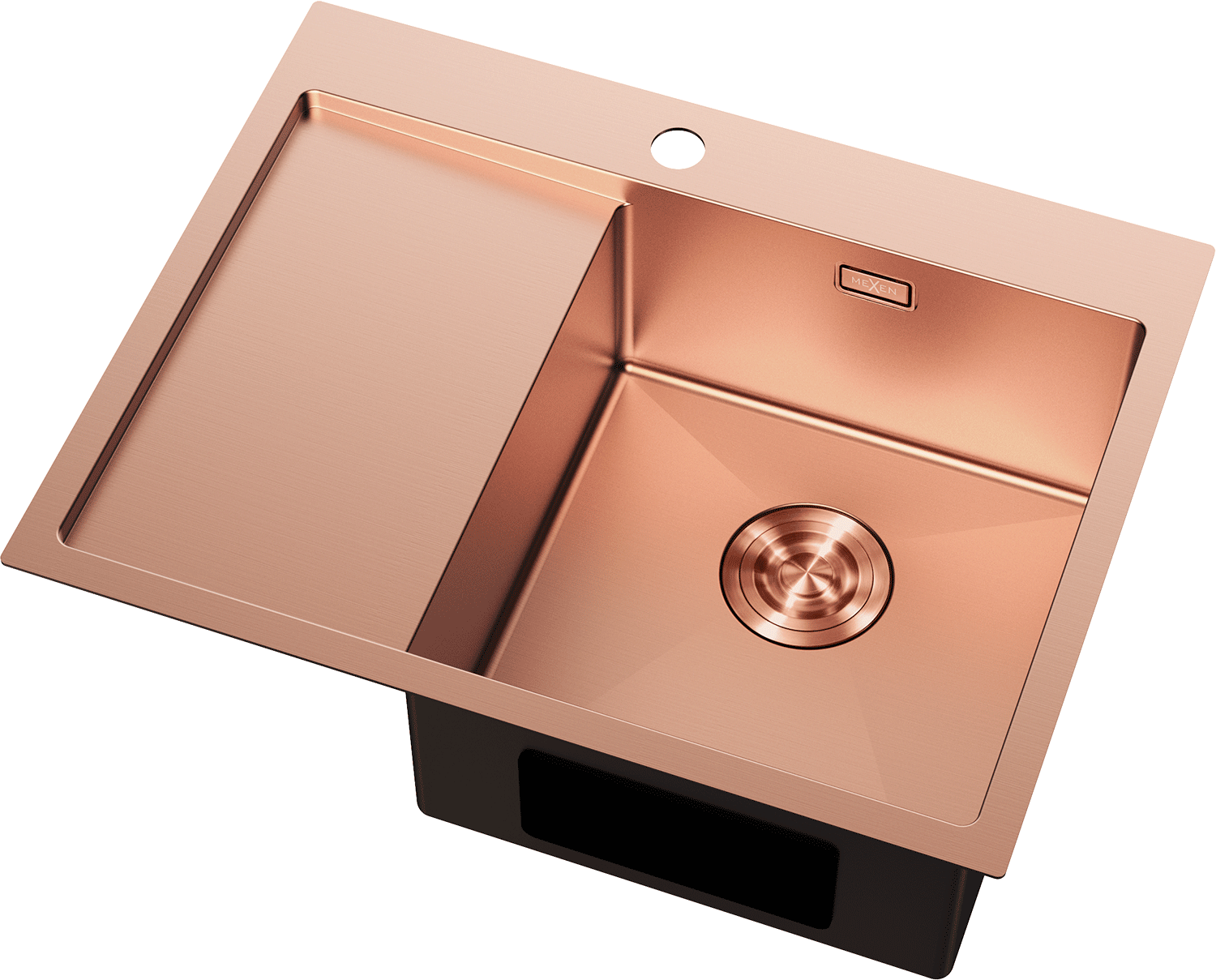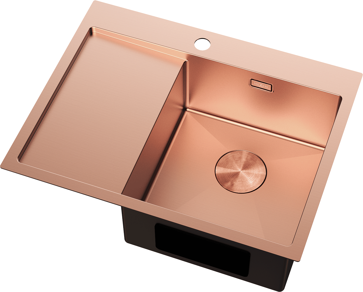 Mexen Exar ocelový dřez s jednou komorou a odkapávací plochou, pravý 620 x 480 mm, měď - 6432621005P-65