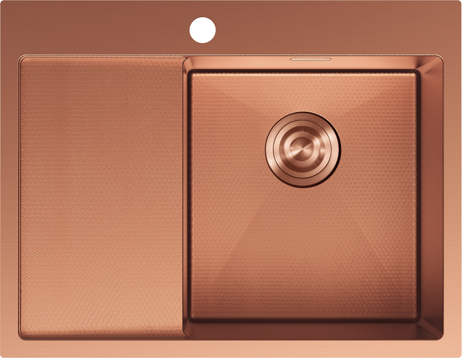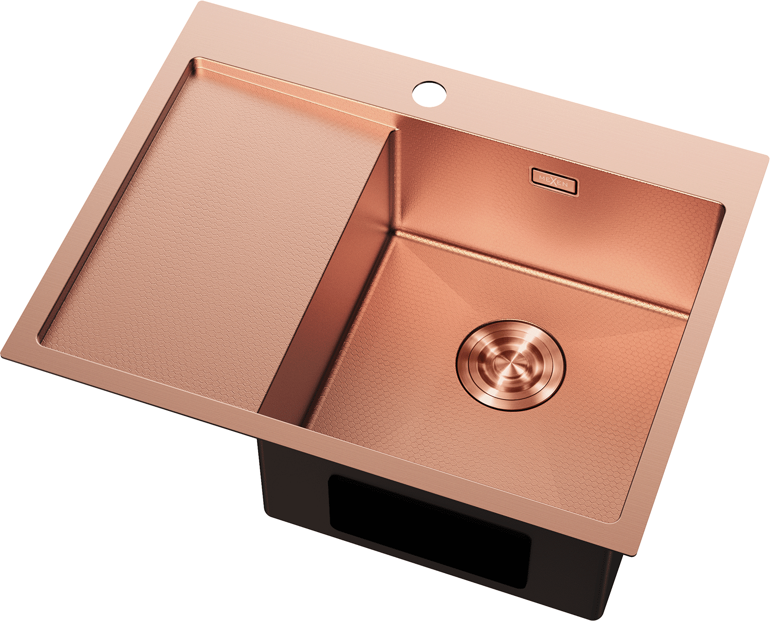 • Mexen Exar ocelový dřez s jednou komorou s odkapávačem, pravý 620 x 480 mm, měď HC - 6432621005P-65HC