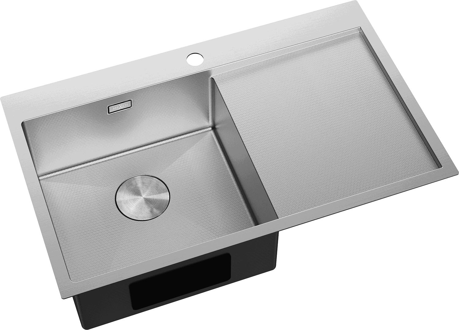 Mexen Exar nerezový dřez s jednou komorou s odkapávačem, levý 780 x 480 mm, inox HC - 6433781010L-01HC