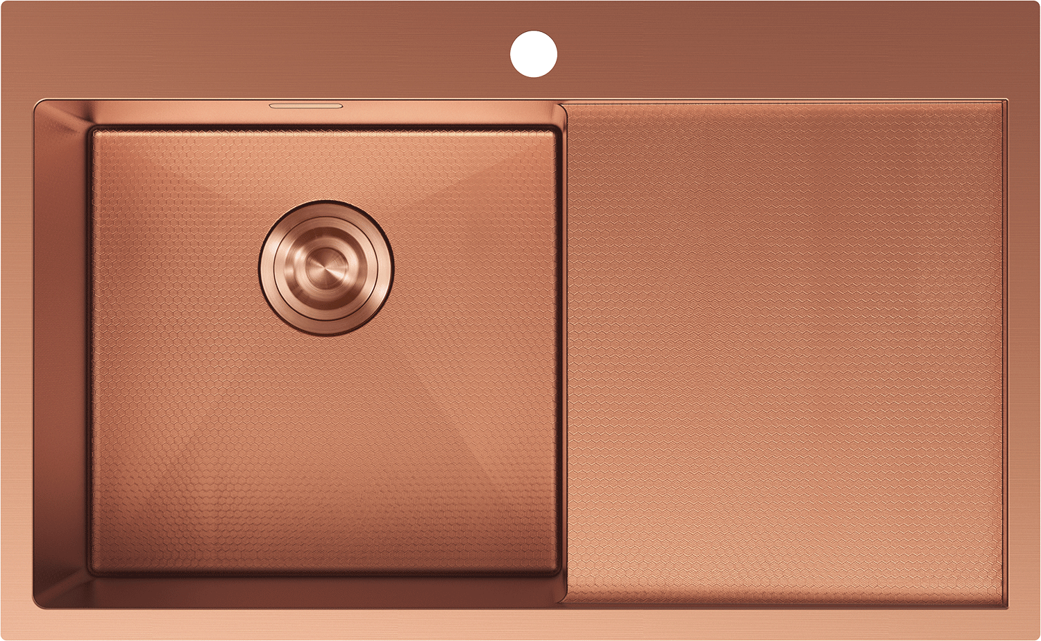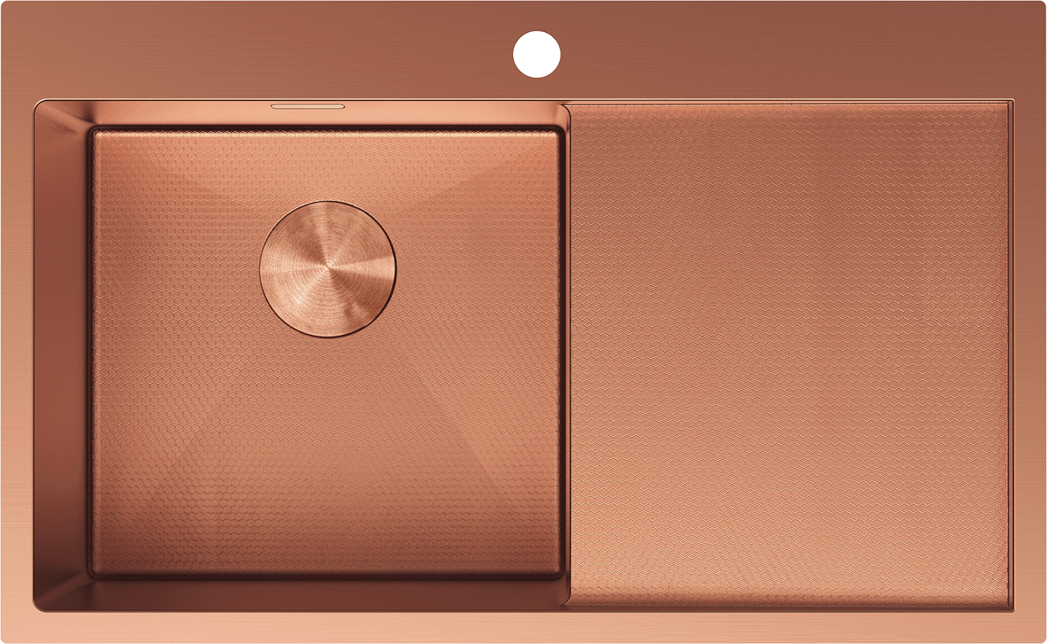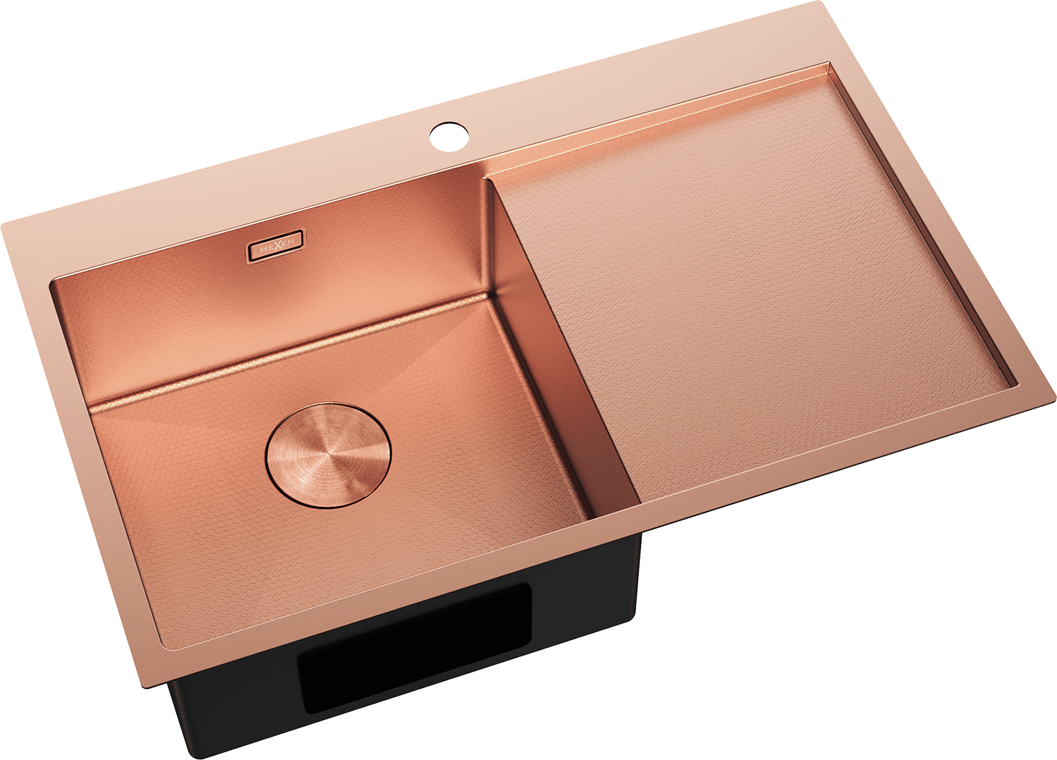 Mexen Exar nerezový dřez s jednou komorou a odkapávačem, levý 780 x 480 mm, měď HC - 6433781010L-65HC