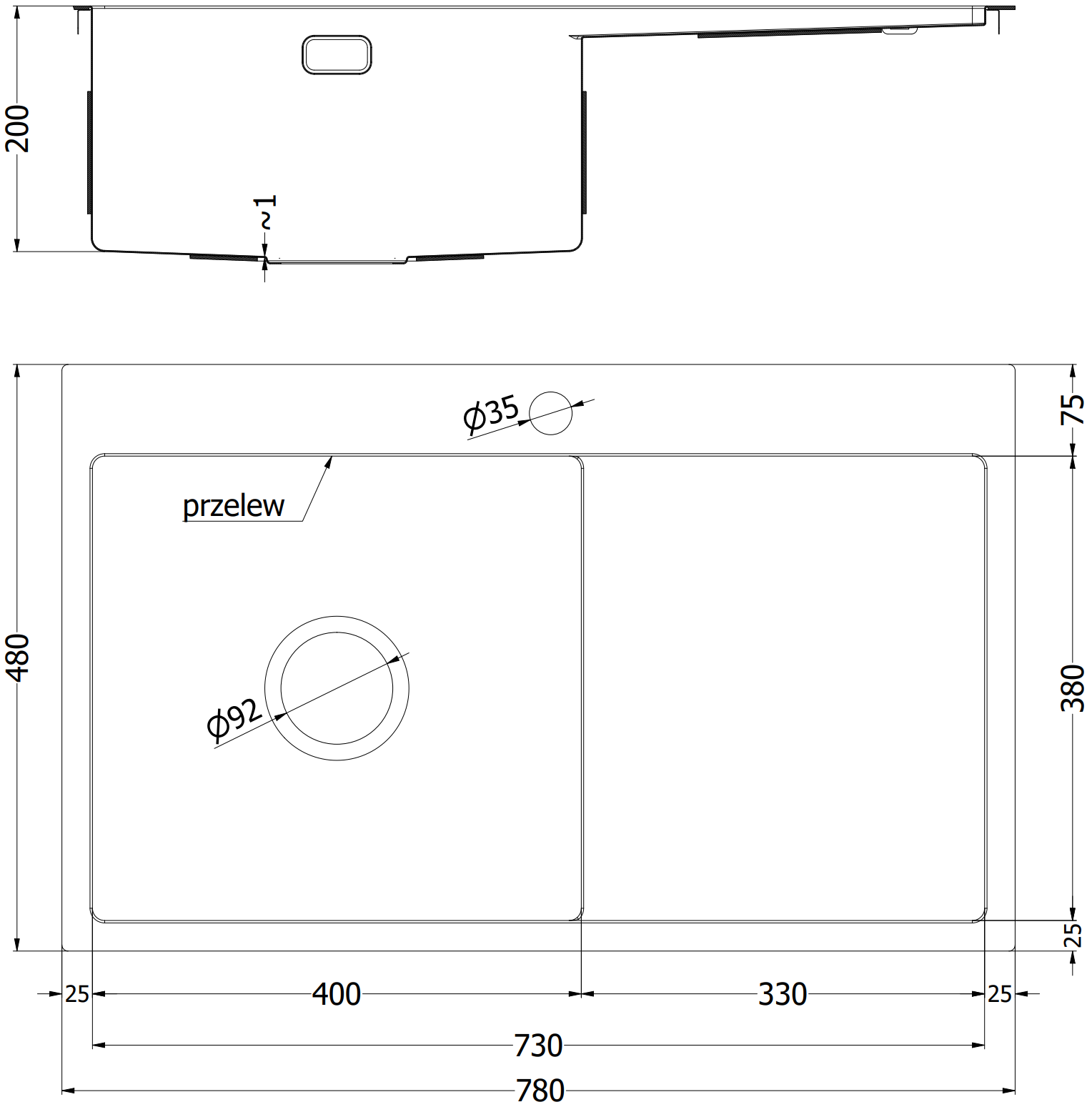 Dřez má skrytý přepadový otvor, který chrání před přetečením vody a zároveň si zachovává elegantní vzhled. Diskrétně zakomponovaný do stěny dřezu nenarušuje jeho estetiku. Je to praktické a stylové řešení, které spojuje bezpečnost s moderním designem.