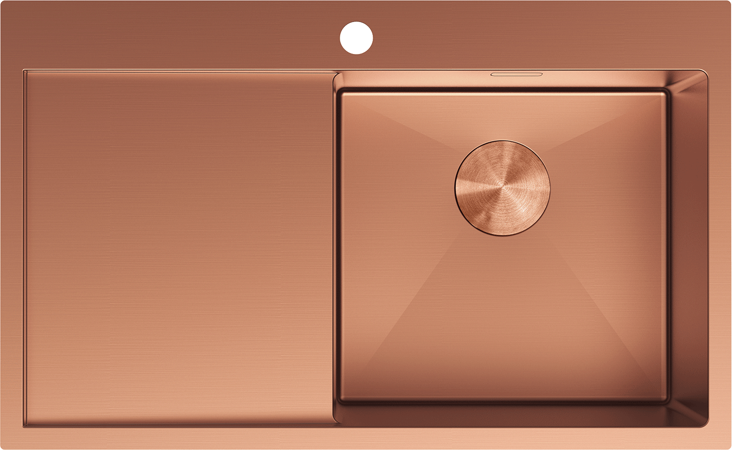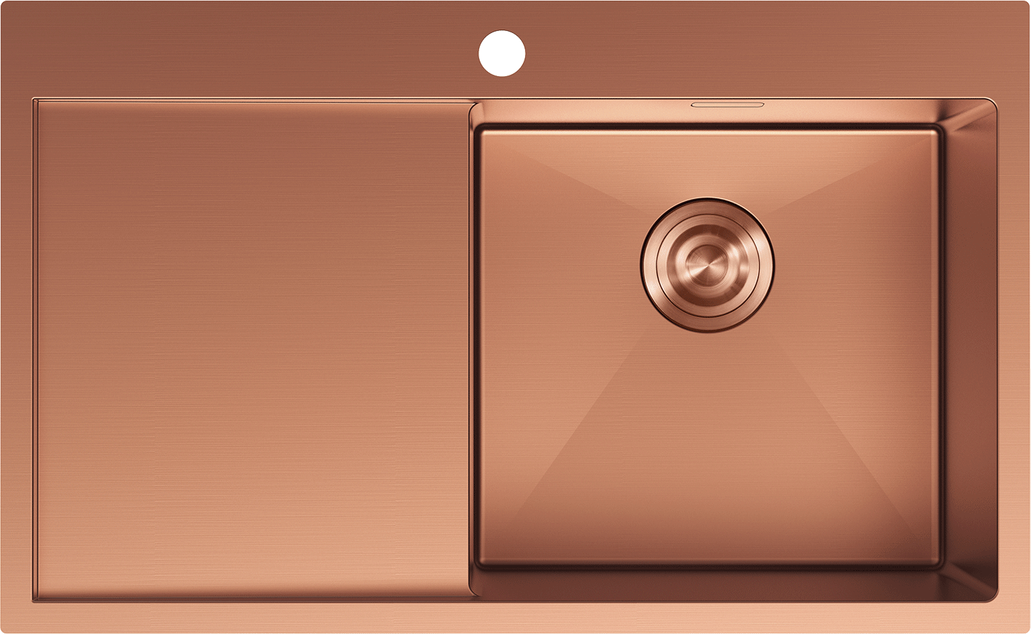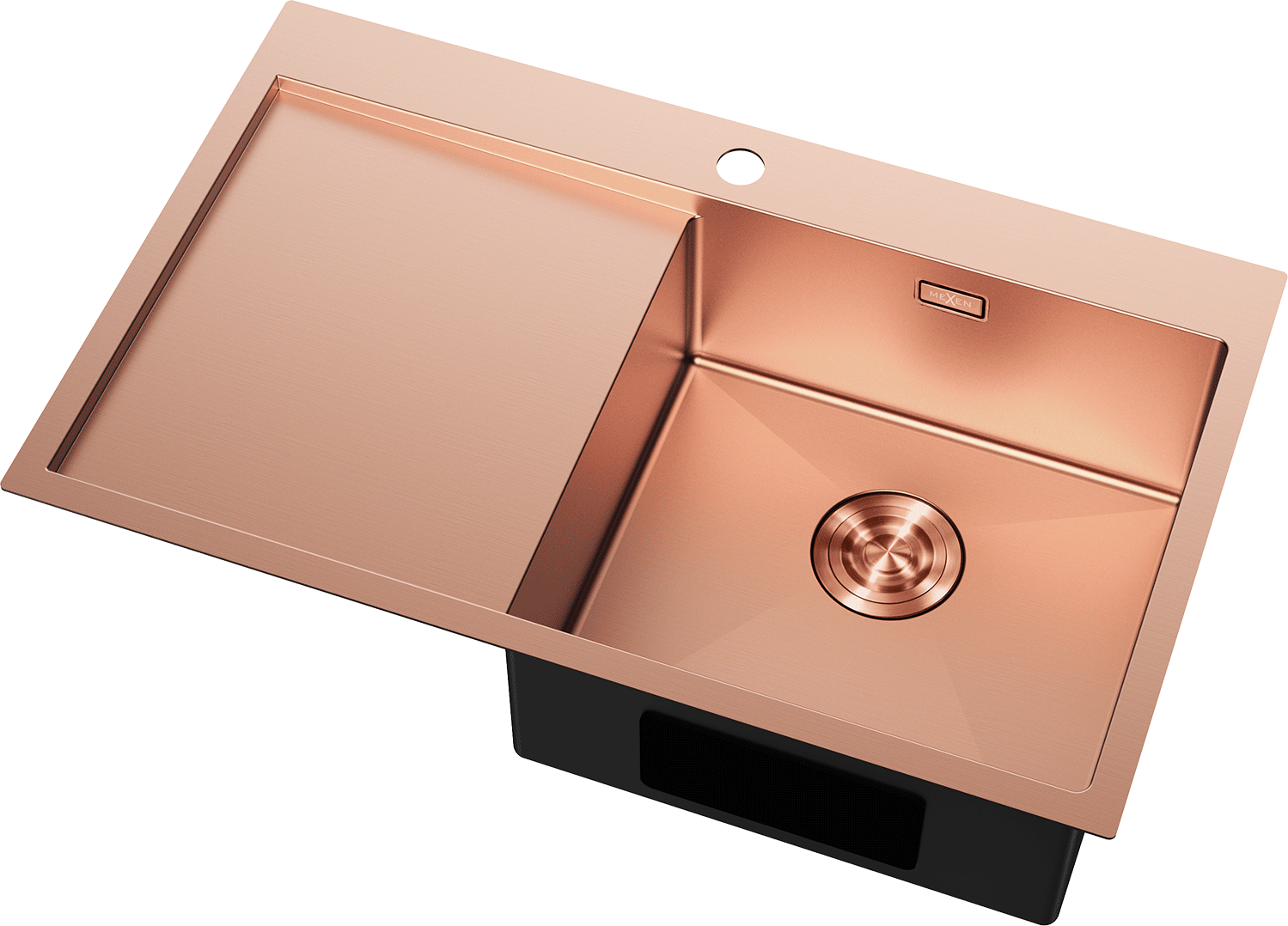 • Mexen Exar ocelový dřez s 1 komorou s odkapávačem, pravý 780 x 480 mm, měď - 6434781010P-65