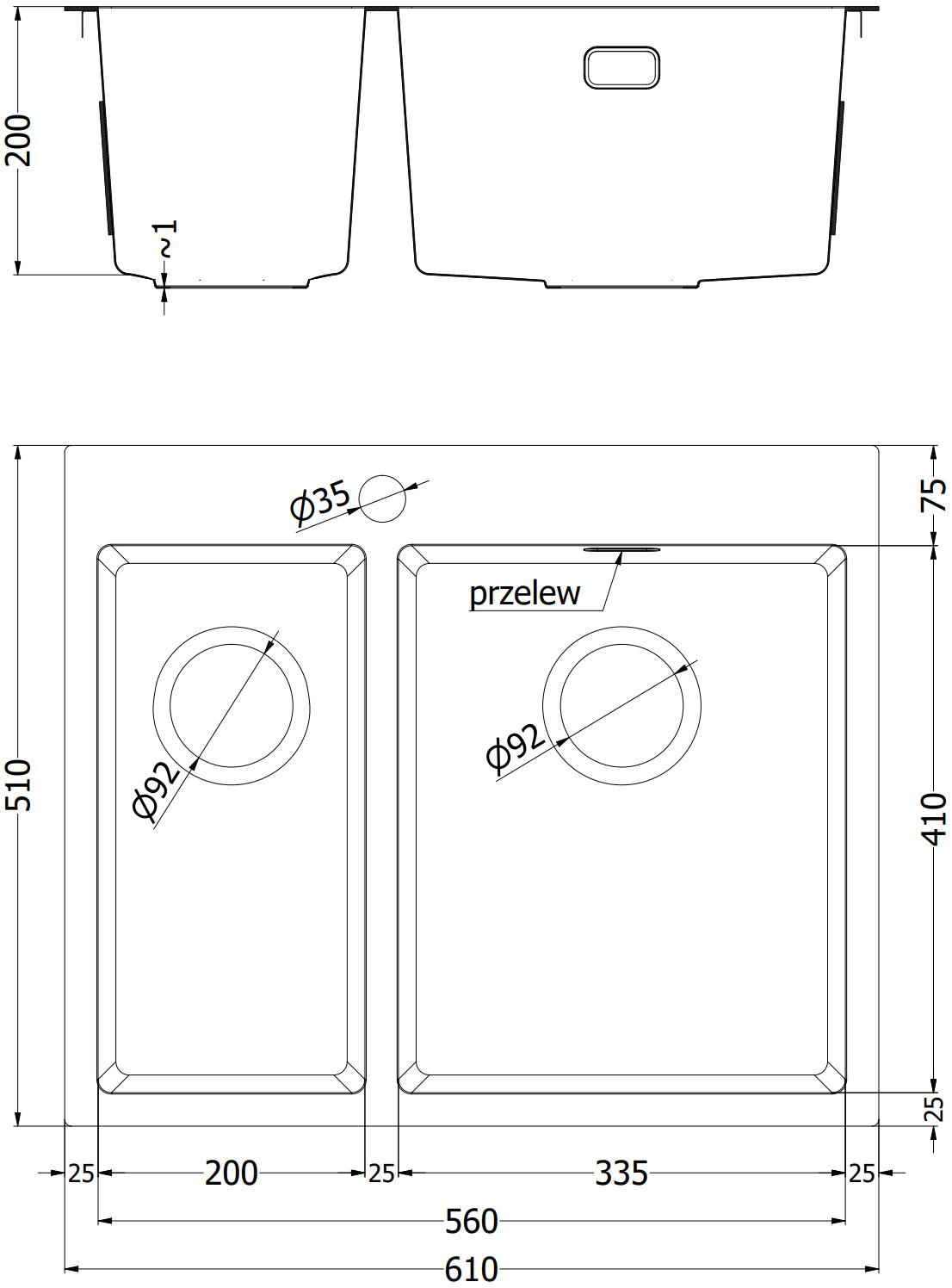Dřez má skrytý přepadový otvor, který chrání před přetečením vody a zároveň si zachovává elegantní vzhled. Diskrétně zakomponovaný do stěny dřezu nenarušuje jeho estetiku. Je to praktické a stylové řešení, které spojuje bezpečnost s moderním designem.