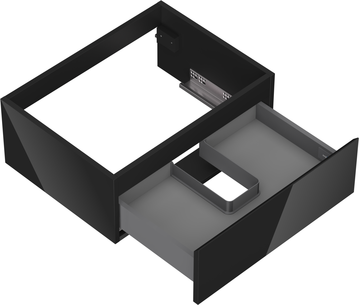 Výřez v zásuvce je navržen tak, aby pojmul sifon, který je nezbytný v instalacích umyvadlových. Díky tomu může být nábytek plně funkčně namontován, aniž by bylo nutné vzdát se prostoru v zásuvce ve prospěch instalace.