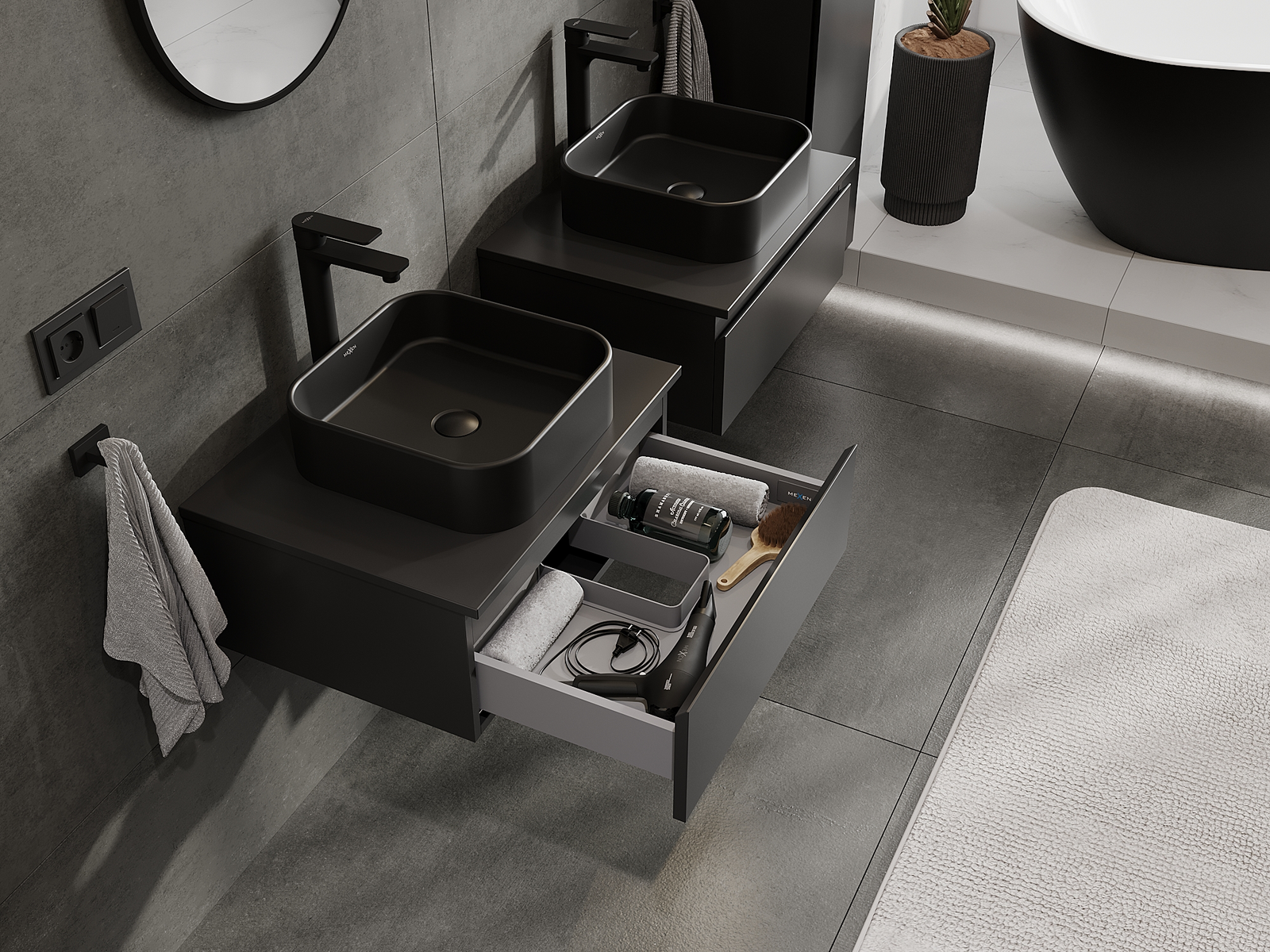 Mexen Orio koupelnová skříňka pod umyvadlo 60 cm, 1 zásuvka, černá matná - 91A10-06023-1-BF71