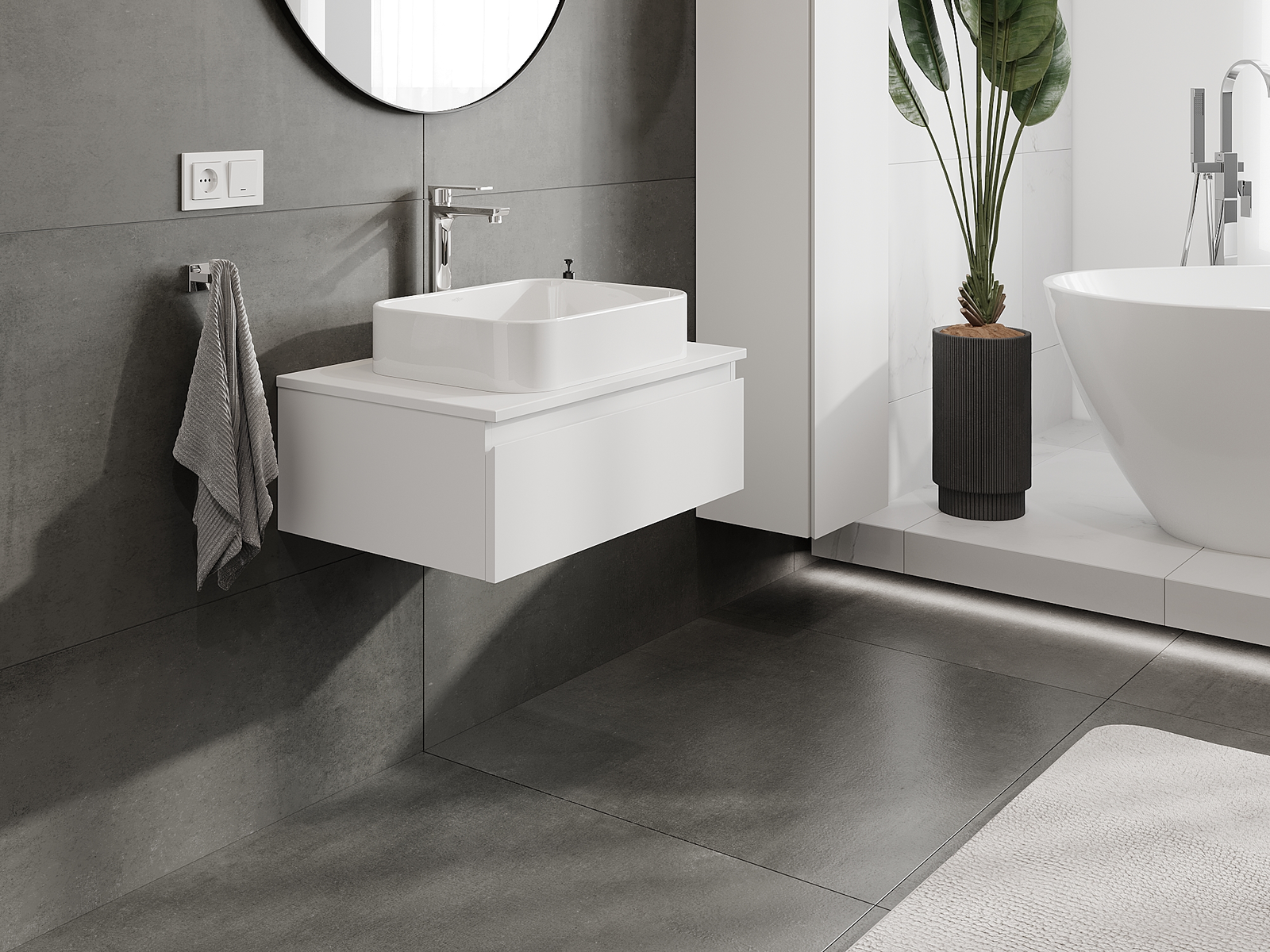 Naše modulární koupelnový nábytek lze kombinovat v různých barevných konfiguracích, což umožňuje plnou personalizaci. Můžete si vybrat jak vzhled, tak funkce jednotlivých prvků, což umožňuje přizpůsobit nábytek vašim stylovým a uživatelským preferencím.