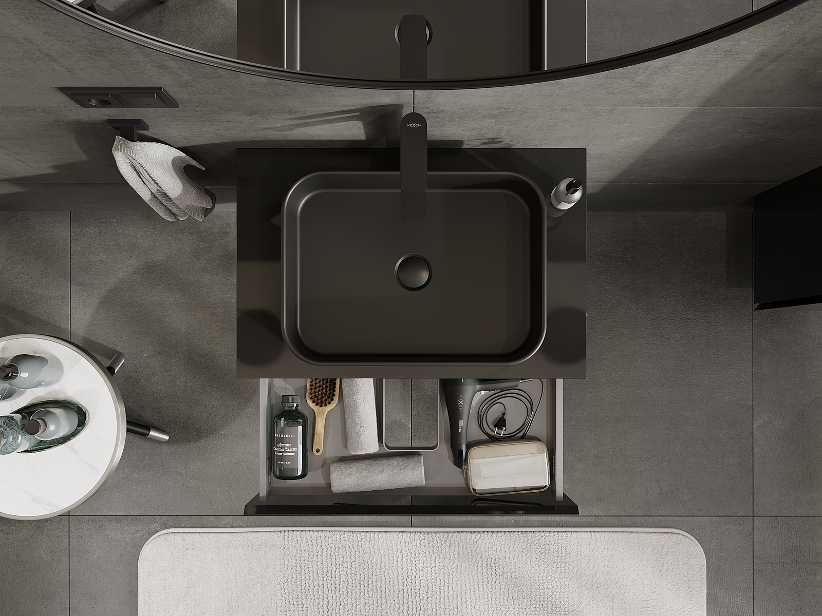 Mexen Orio koupelnová skříňka pod umyvadlo 70 cm, 1 zásuvka, černý lesk - 91A10-07023-1-BF70