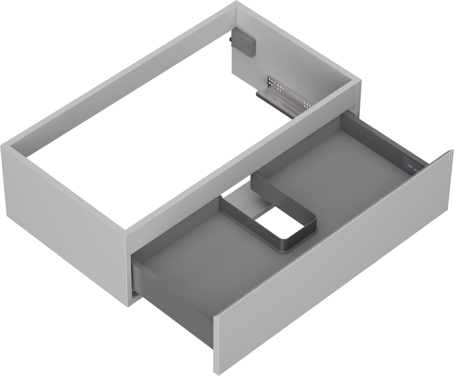 Výřez v zásuvce je navržen tak, aby pojmul sifon, který je nezbytný v instalacích umyvadlových. Díky tomu může být nábytek plně funkčně namontován, aniž by bylo nutné vzdát se prostoru v zásuvce ve prospěch instalace.
