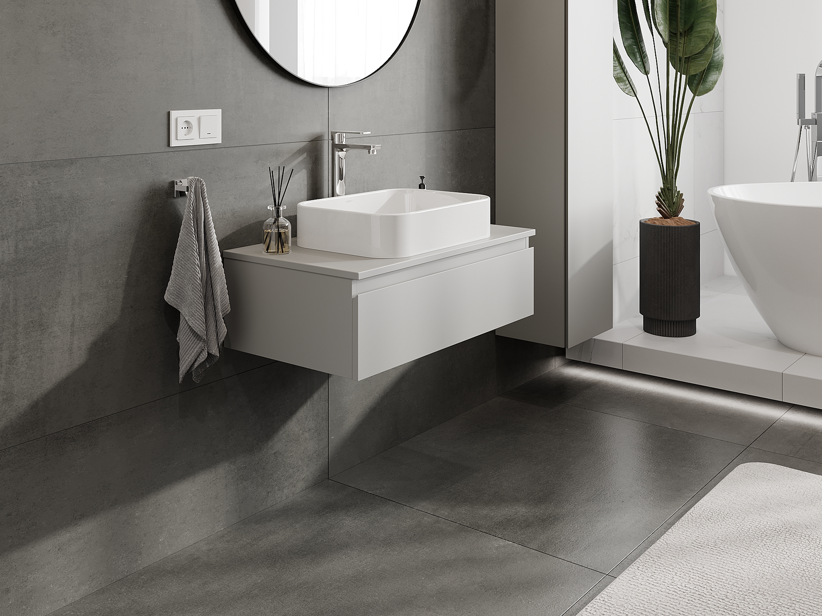 Díky pevným materiálům, preciznímu provedení a moderním technologickým řešením produkt zajišťuje pohodlí při používání, odolnost vůči vlhkosti a změnám teploty a také elegantní vzhled, který se hodí k různým stylům koupelen.